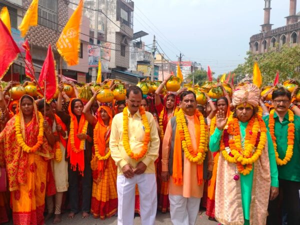 फतेहगंज पश्चिमी मे श्री हरि विष्णु घट घटवासी ने निकाली भव्य कलश यात्रा