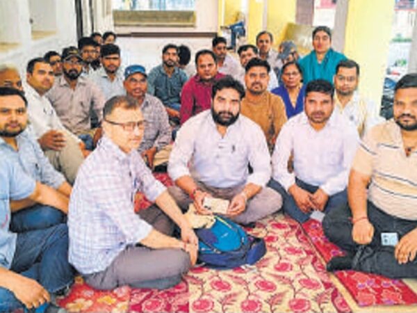 अधिवक्ता के खिलाफ धरने पर बैठे लेखपाल, कल से नही करेंगे काम