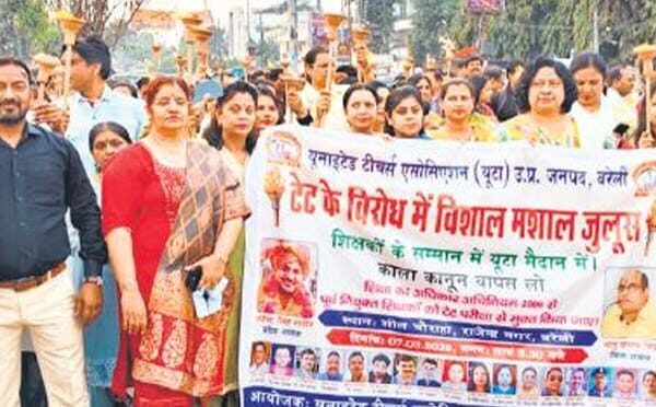 टेट अनिवार्यता के विरोध मे शिक्षको ने निकाला मशाल जुलूस