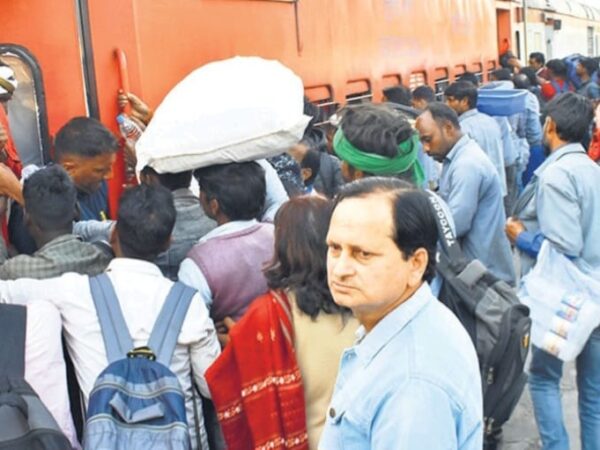 ट्रेनों मे वापसी की भीड़, चढ़ने के लिए धक्कामुक्की