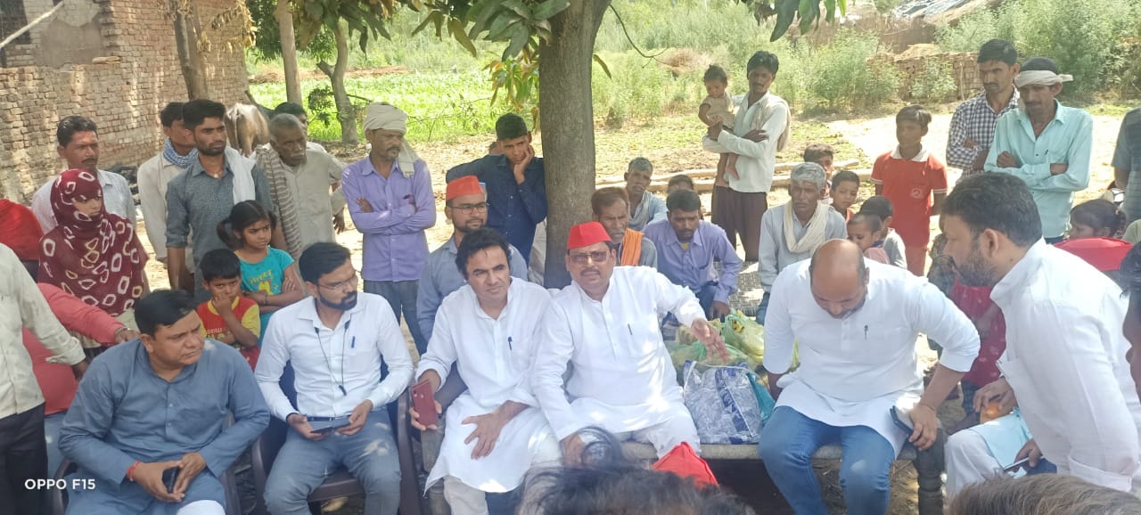सपा पदाधिकारियो ने आग पीड़ितों से की मुलाकात, दी राहत सामग्री