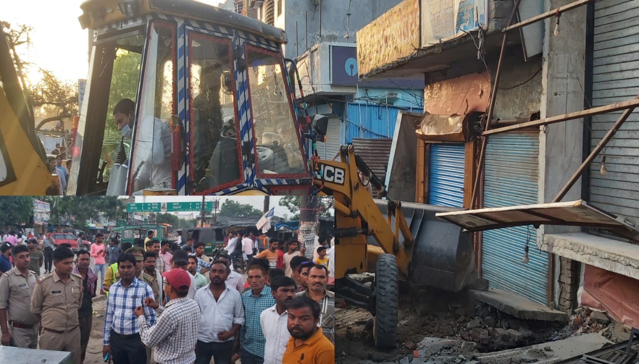 नगर मे अतिक्रमण पर चला प्रशासन का बुलडोजर, आगे भी रहेगा जारी
