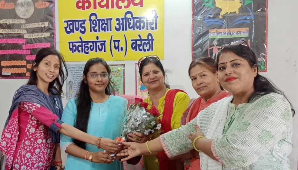 नवागत बीईओ का शिक्षामित्रों व शिक्षकों ने बुके देकर किया स्वागत