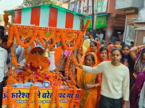 ओंकारेश्वर से पदयात्रा कर लाए शिवलिंग का किया स्वागत