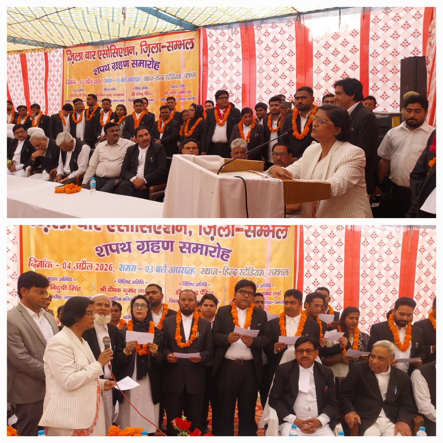 सम्भल। शनिवार को नगर क्षेत्र के हिन्द इंटर कॉलेज स्टेडियम में जिला बार एसोसिएशन,संभल का शपथ ग्रहण समारोह कार्यक्रम आयोजित किया गया। इस मौके पर शपथ ग्रहण समारोह के मुख्य अतिथि जिला न्यायाधीश डॉ विदुषी सिंह व मुख्य न्यायाधीश मजिस्ट्रेट दीपक कुमार जायसवाल रहे। जिला बार एसोसिएशन संभल की नव निर्वाचित कार्यकारिणी को जनपद न्यायाधीश संभल द्वारा शपथ दिलाई गई शपथ ग्रहण समारोह में जनपद न्यायाधीश डॉ विदुषी सिंह द्वारा कहा गया कि समस्त अधिवक्तागण वादकारी हित में कार्य करें मुख्य न्यायाधीश मजिस्ट्रेट दीपक कुमार जायसवाल ने कहा की वादकारी का हित सर्वोपरि है और अधिवक्तागण अधिक से अधिक न्याय कार्य करें नव निर्वाचित कार्यकारिणी को एल्डर्स कमेटी द्वारा प्रमाण पत्र दिए गए नवनिर्वाचित अध्यक्ष शकील अहमद ने कहा की हम न्यायालय में वादकारी के हित में कार्य करेंगे जिला बार एसोसिएशन के सचिव सरफराज नवाज एडवोकेट ने कहा की बार और बेंच दो पहिया है हमें बार और बेंच के बीच में तालमेल बनाकर न्यायिक कार्य करना है और कहां की अधिवक्ता हित में कार्य किया जाएगा अधिवक्ता की कोई भी समस्या होगी उसे बार के समक्ष रखा जाएगा और समस्या का समाधान किया जाएगा व कोषाध्यक्ष सैयद फ़रोग अहसन शान एड0 ने कहा कि अधिवक्ता हित व कल्याण में बार कोष का उपयोग किया जाएगा। शपथ ग्रहण समारोह में चंदौसी बार एसोसिएशन के अध्यक्ष विनोद सिंह तहसील बार के अध्यक्ष प्रदीप गुप्ता टैक्स बार के अध्यक्ष मोहम्मद इकराम व वरिष्ट अधिवक्ता मोहम्मद ताहिर,पवन कुमार रस्तोगी,मसूद अली फारुकी,जफर अली,मोहम्मद जमाल पाशा, अब्दुल रहमान एडवोकेट,मोहम्मद नाजिम, सैय्यद नाजिर हुसैन आदि रहे शपथ ग्रहण समारोह का संचालन तनवीर आलम एडवोकेट ने किया अध्यक्ष जी ने बाद में समस्त अधिवक्तागण का शुक्रिया अदा किया।