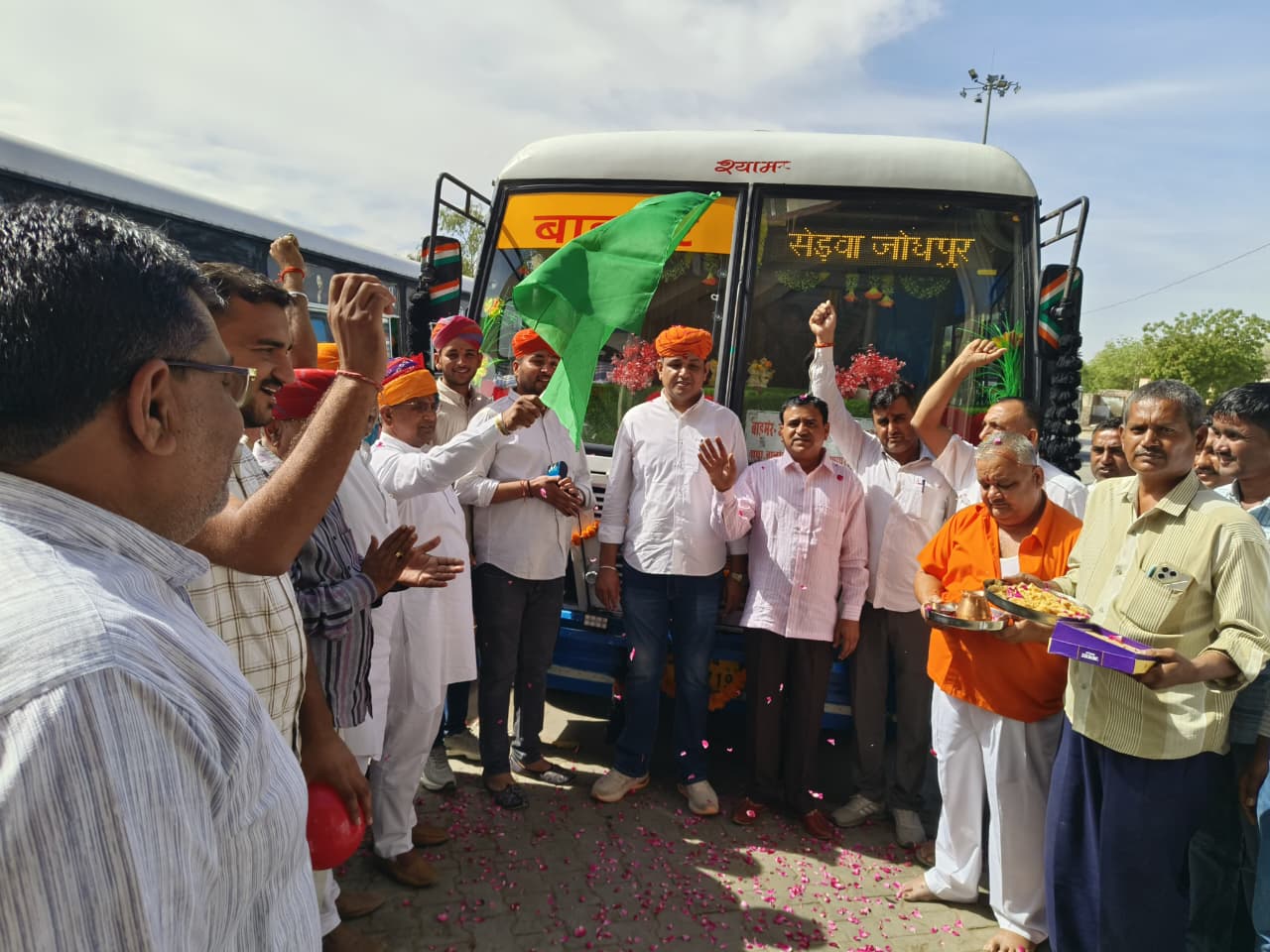 कार्यक्रम की शुरुआत में रोडवेज आगार प्रबंधक एवं स्टाफ की ओर से चौहटन विधायक आदूराम मेघवाल, प्रधान रुपाराम, प्रोफेसर गढ़वीर का साफे व मालाएं पहनाकर स्वागत किया। उसके बाद रोडवेज बस चालक श्रवण राम एवं परिचालक अशोक जाखड़ को अतिथियों की ओर से साफे पहनाकर बस को हरी झंडी दिखा कर रवाना किया।