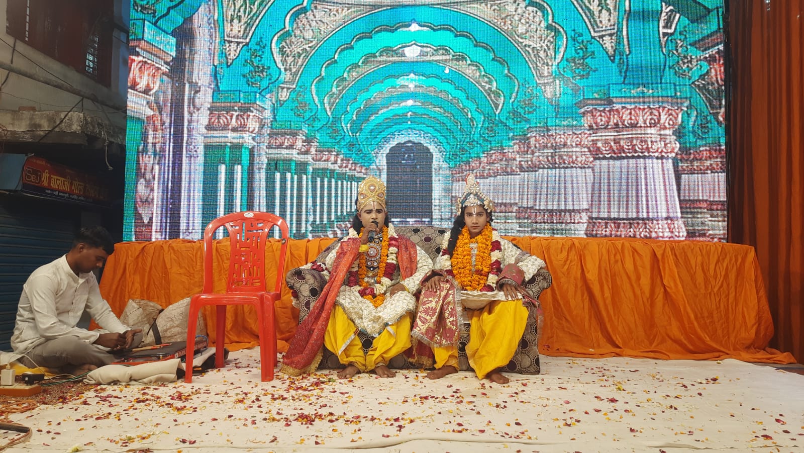 अध्यक्ष राजू मिश्रा और अन्य पदाधिकारियों ने सर्वप्रथम स्वरूपों की आरती कर लीला मंचन आरंभ कराया।