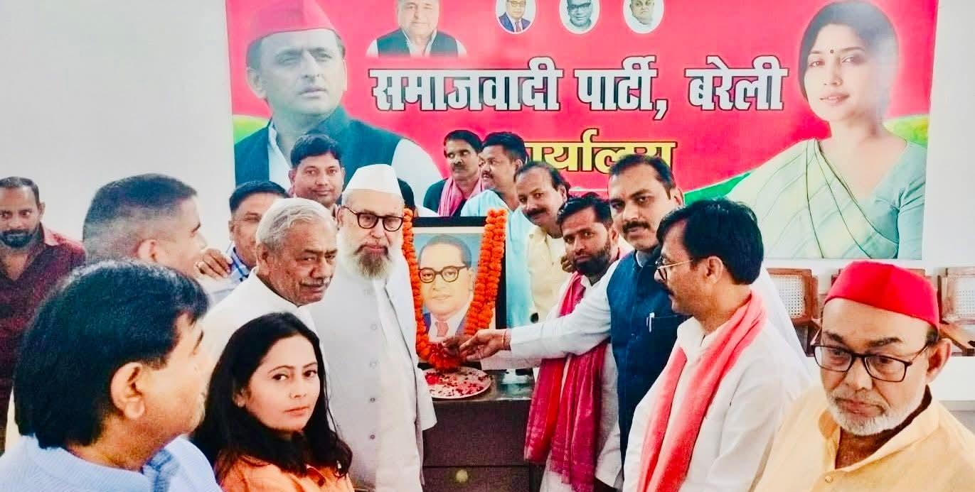 बरेली। समाजवादी पार्टी के कार्यालय पर महानगर अध्यक्ष शमीम खां सुल्तानी की अध्यक्षता में जयंती मनाई गई। कार्यकर्ताओं ने वावा साहब के चित्र पर पुष्प अर्पित कर संविधान की रक्षा का संकल्प लिया। शमीम सुल्तानी ने कहा कि बाबा साहब ने हिंदू कोड बिल और समानता के सिद्धांतों के जरिए पिछड़ों और दलितों को सम्मान से जीने का हक दिया। भोजीपुरा विधायक शहजिल इस्लाम ने कहा कि बाबा साहब के अधूरे मिशन को अखिलेश यादव पीडीए के माध्यम से मजबूती दे रहे हैं। पूर्व सांसद प्रवीण सिंह ऐरन ने भाजपा पर निशाना साधते हुए कहा कि आज संविधान को बचाने की बड़ी चुनौती है। पंडित दीपक शर्मा, अशोक यादव, कदीर अहमद, राजेश अग्रवाल, ई. अनीस अहमद, संजीव सक्सेना, संजीव पादव, सैफ बली खां, हरिओम प्रजापति, साजिद, सत्यदेव ओझा, आदित्य कश्यप, अमित गिहार, अकरम खान, ब्रजेश यादव, ओमपाल यादव, मुधिष्ठिर पाल सिंह, बाबा मिर्मा, ओमपाल यादव, अहमद खान, राशिद अहमद, महेन्द्र, कुलदीप राना, राजेंद्र राजपूत आदि मौजूद रहे।।