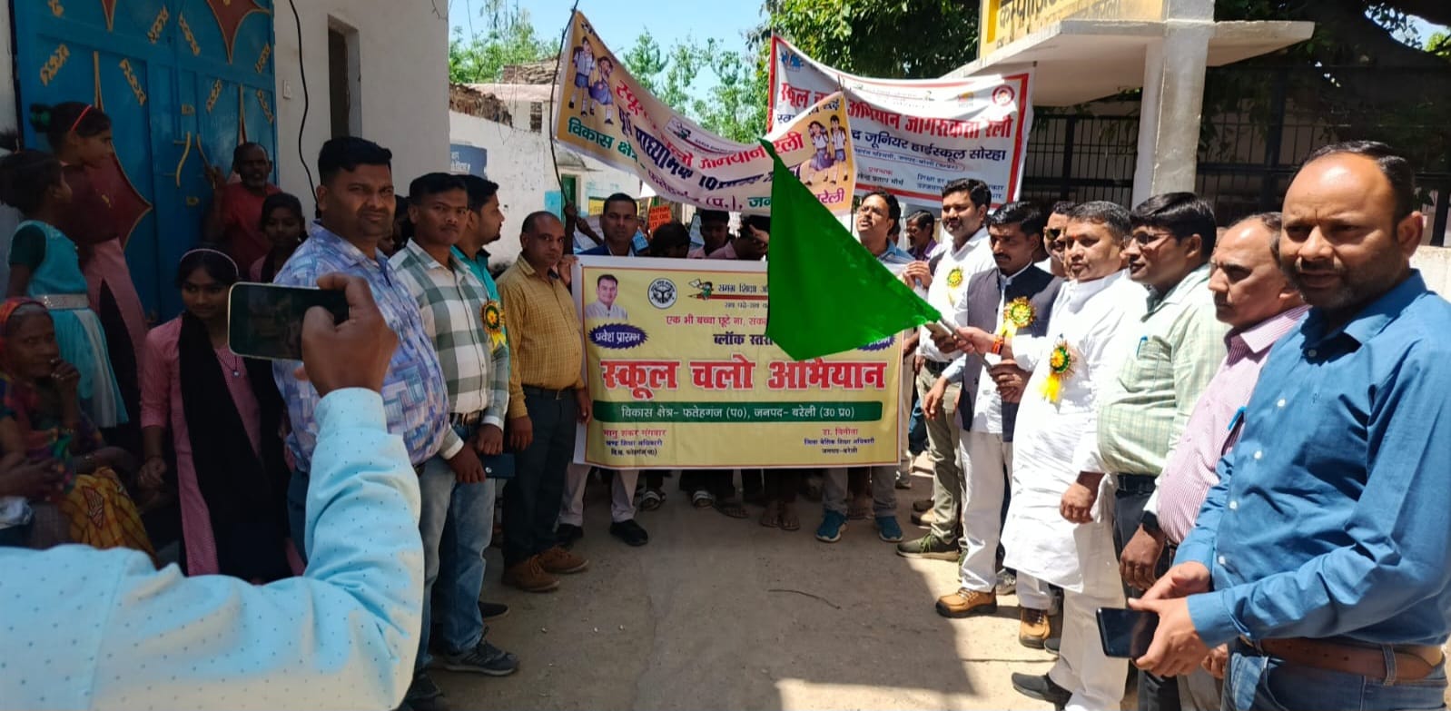 बरेली/ फतेहगंज पश्चिमी। ब्लॉक संसाधन केंद्र परसाखेड़ा के कंपोजिट विद्यालय सोरहा मे स्कूल चलो अभियान की रैली का शुभारंभ ब्लॉक प्रमुख प्रतिनिधि सत्येंद्र यादव ने हरी झंडी दिखाकर किया। रैली का मुख्य उद्देश्य जन सामान्य को परिषदीय विद्यालयों में अधिक से अधिक नामांकन करने के लिए जागरूक करना था तथा उन्हें बेसिक शिक्षा विभाग की योजनाओं से परिचित कराना था। सत्येंद्र यादव ने कहा कि परिषदीय विद्यालयों मे अधिक से अधिक नामांकन करने की आवश्यकता है। बीईओ भानुशंकर गंगवार ने छात्रों को नि:शुल्क पाठ्य पुस्तक भी वितरित की। संचालन राजकुमार यादव ने किया। इस मौके पर प्रधानाध्यापक लज्जावती, प्रधान शाकिर, मनोज शर्मा, प्रद्युम्न यादव, लाल बहादुर सहित शिक्षक-शिक्षिकाएं व छात्र उपस्थित रहे।।