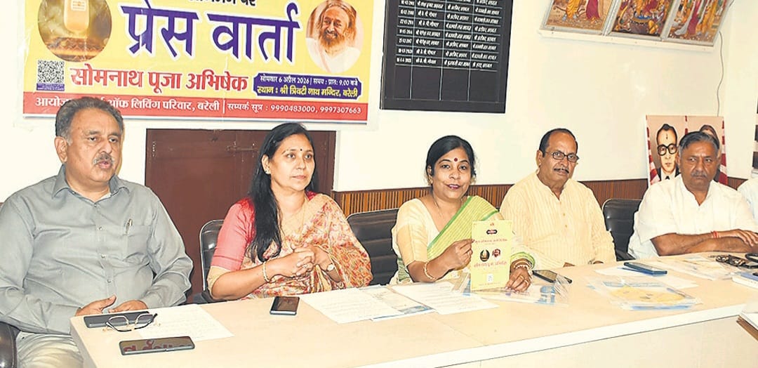 बरेली। आर्ट ऑफ लिविंग परिवार द्वारा नाथ नगरी बरेली के त्रिवटीनाथ मंदिर में एक ऐतिहासिक आध्यात्मिक आयोजन किया जा रहा है। 1000 वर्ष प्राचीन सोमनाथ ज्योतिर्लिंग के पावन अवशेष छह अप्रैल को बरेली पहुंचेंगी। जिन्हें आर्ट ऑफ लिविंग के संस्थापक श्री श्री रवि शंकर के मार्गदर्शन में देशभर में ले जाया जा रहा है। बेंगलुरु स्थित आर्ट ऑफ लिविंग आश्रम से स्वामी भव्यतेज जी प्राचीन सोमनाथ ज्योतिर्लिंग के पावन अवशेषों के साथ सोमवार छह अप्रैल को बरेली पहुंचेंगे। समिति की श्वेता कुनार ने बताया कि ‎कार्यक्रम में प्रातः 9 बजे से शिवलिंग पूजा, भजन-संकीर्तन एवं दर्शन का आयोजन किया जाएगा। गोपाल भारण अग्रवाल ने बताया कि यह आयोजन भारतीय सांस्कृतिक विरासत और आध्यात्मिक चेतना के पुनर्जागरण का प्रतीक है। मंदिर ट्रस्ट व स्थानीय श्रद्धालुओं द्वारा अवशेषों का भव्य स्वागत किया जाएगा। वार्ता में सौरभ मेहरोत्रा, रीना अग्रवाल, अमित नरनोली, पार्थो कुनार, ब्रजवासी अग्रवाल, नवीन गोयल, गोपाल शरण, अशोक भसीन आदि रहे।।