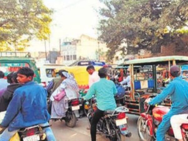 सड़क किनारे अतिक्रमण चलते बाजार मे तीन घंटे लगा जाम