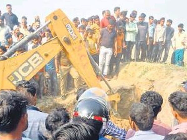 पिल्ला निकालते समय बंद कोल्हू की भट्ठी मे फंसा बच्चा