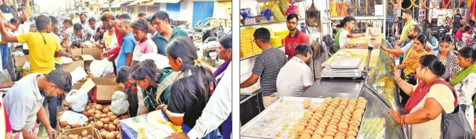 बरेली। भाई-बहन पवित्र त्योहार भैया दूज गुरुवार को मनायी जाएगी। भैया दूज को लेकर बुधवार को दिनभर बाजार में चहल-पहल नजर आई। बहनों ने भैया का टीका करने के लिए दोगुने दाम पर गोला खरीदा। इस बार गोला चार से पांच सौ रुपये किलो बिका है। व्यापारियों ने गोला की आवक कम होने से महंगा होने की बात कही है। दिवाली के बाद भाई दूज का त्योहार धूमधाम से मनाया जाता है। इस दिन बहन अपने भाई का तिलक कर उसकी आयु और बेहतर स्वास्थ्य की कामना करती है। शहर के बाजारों में बुधवार को बहनों ने अपने भाईयों के लिए गोला और मिठाइयों की खरीदारी की। बाजार में गोला चार सौ से पांच सौ रुपए प्रति किलो के हिसाब से बिक रहा है। पिछली भाई दूज पर गोला 220 से 280 रुपये प्रति किलो के हिसाब से बिका था। इस साल गोला पिछले साल के मुकाबले दोगुना महंगा बिक रहा है, जिससे खरीदने वालों की जेब में ज्यादा बोझ पड़ रहा है। दुकानदारों ने बताया कि इस साल गोला की फसल खराब होने से गोला की आवक कम हो रही है, जिससे गोला महंगा मिल रहा है। उन्होंने बताया कि गोला 600 रुपये प्रति किलो के हिसाब से बिक सकता है। वहीं मिठाइयों की दुकानें शहर में दिवाली से सजी हुई है। ग्राहकों को लुभाने के लिए दुकानदारों ने दुकानों के सामने ही मिठाई सजाकर बेंच रहे हैं। मिठाई व्रिकेताओं ने बताया की सामान्य दिनों की अपेक्षा दिवाली पर ज्यादा कारीगरों को लगाना पड़ता है। तब जाकर त्योहारों पर मिठाई की पूर्ति हो पाती है। दिवाली और भैयादूज पर सबसे ज्यादा मिठाई की बिक्री होती है। देर रात तक लोगों ने मिठाइयों की खरीदारी की।।