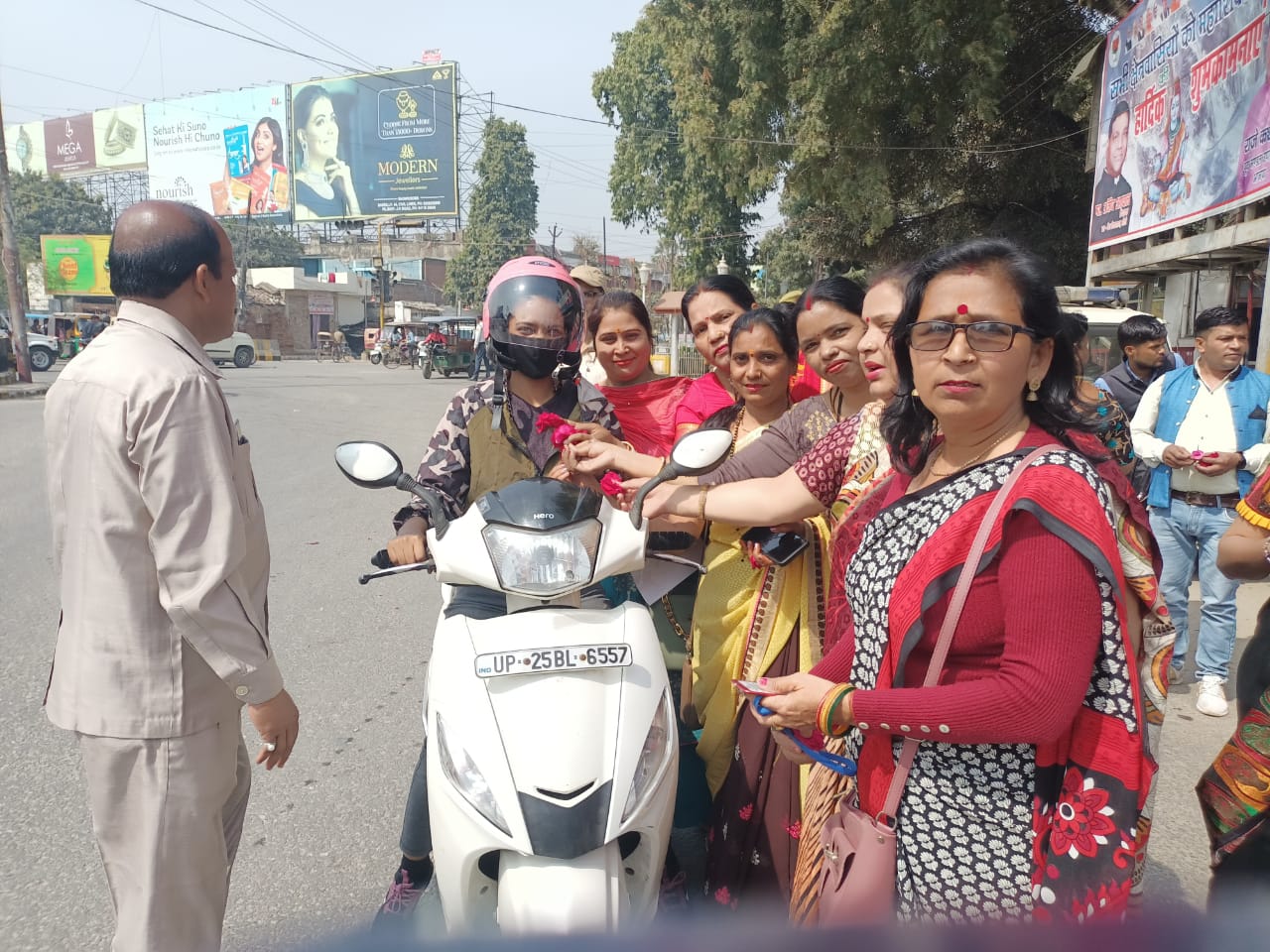बिना हेलमेट लगाए हुए लोगों को फूल देकर उनसे हेलमेट लगाने की गुजारिश की एवं ट्रैफिक नियमों का पालन करने वाले लोगों को फूल देकर सम्मानित किया ।इसमें बरेली ट्रैफिक इंस्पेक्टर एवं पीएसआई, साथ ही कई पुलिसकर्मियों ने भी काफी सहयोग किया ।