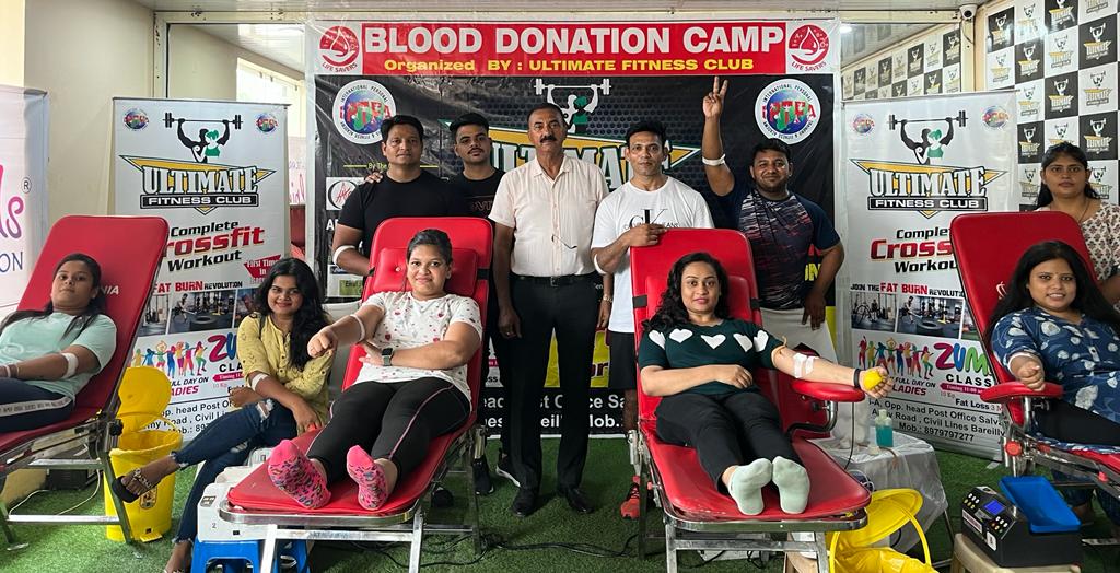 बरेली। शनिवार को अल्टीमेट फिटनेस क्लब की चौथी वर्षगांठ पर रक्तदान शिविर का आयोजन किया गया। शिविर मे फिटनेस सेंटर के सदस्यों ने बढ़ चढ़कर हिस्सा लिया और रक्तदान भी किया। शिविर में लगभग 70 सदस्यों ने रक्तदान किया। रक्तदान शिविर को आईएमए टीम द्वारा कार्य को संपादित किया गया। इस दौरान अतिथि के रूप मे जगदीश सिंह पाटनी पूर्व डिप्टी डीएसपी और हेल्पिंगहैंड फाउंडेशन के मिस्टर गौरव मित्तल मौजूद रहे। जगदीश पाटनी ने ब्लड डोनेशन के सम्बन्ध मे बहुमूल्य जानकारी दो गयी। कैम्प को सफल बनाने में जिम के ओनर अकरम बेग और हेल्पिंगहैंड फाउंडेशन के मिस्टर गौरव मित्तल ने सभी का आभार व्यक्त किया।।