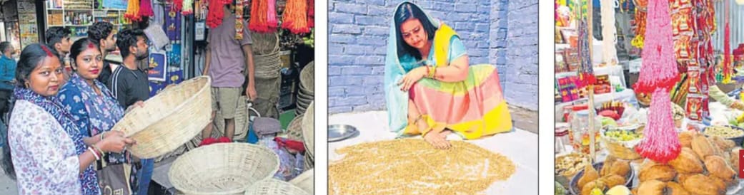 बरेली। छठ पूजा का महापर्व शनिवार से नहाय खाय के साथ शुरू होगा। पूजा के लिए व्रत्ती महिलाओं ने शुक्रवार को पूरे दिन तैयारियां की। इज्जतनगर रेलवे कैटीन बाजार में शुक्रवार की शाम को काफी रौनक बढ़ी। शहर के साथ ही आसपास जिले के पूर्वांचलवासी भी पूजा सामग्री के साथ ही व्रत में खाने का सामान और फल लेने के लिए पहुंचे। पूर्वांचल भोजपुरी समाज समिति के उपाध्यक्ष एसके पाण्डेय ने बताया कि छठ पूजा की शुरुआत शनिवार को नहाय-खाय से होगी। व्रती महिलाएं सूर्योदय से पहले स्नान करके अपने व्रत की शुरुआत करेंगी। इस दौरान घर में पवित्रता का विशेष ध्यान रखा जाएगा। व्रत मे महिलाएं देशी घी में बनी लौकी चने की दाल और चावल का प्रसाद बनाकर ग्रहण करेंगी। इस दिन शरीर और मन को शुद्ध करने का प्रतीक माना जाता है ताकि अगले दिनों का व्रत पूरी श्रद्धा से पूरा किया जा सके। व्रत और पूजा की तैयारियों के तहत पूर्वांचलवासियों ने शुक्रवार को खरीदारी की गई। इज्जतनगर रेलवे कैंटीन बाजार में बाजार में खरीदारी के लिए शहर ही नहीं आसपास के जिलों से भी लोग पहुंचे। इस दौरान लोगों ने बांस से बने हुए दउरा, ढगरा, ठेकुआ सांचा सहित सूप, पान, सुपारी, नारियल, साठी के चावल, बद्दी, आलता, किराव समेत पूजा की सभी सामग्री खरीदी। पूजा में मुख्य प्रसाद ठेकुआ बनाने के लिए गेहूं की सफाई करने के बाद लोगों ने चक्की पर पहुंचकर आटा पहले ही पिसवा लिया है, जिससे व्रत के दौरान इधर-उधर न भागना पड़े। छठ पूजा में रखा जाता तन-मन की शुद्धता का ख्यालः पूर्वांचल भोजपुरी समाज समिति के उपाध्यक्ष ने बताया कि भैया दूज से ही पूजा में उपयोग होने वाली सब्जियों और फलों को लोग खाना बंद कर देते हैं। पूजा का समापन होने के बाद ही लोग इन सब्जियों और फलों का सेवन करते हैं। छठ पूजा में तन मन धन की पूरी शुद्धता का ध्यान रखा जाता है। छठ पूजा में लोग एक-दूसरे से द्वेष भुलाकर मिलते है। पूजा के चारों दिन झूठ बोलना भी वर्जित है। पूजा के दिनों कोई न तो झूठ बोल सकता है न किसी लड़ाई करते है।।