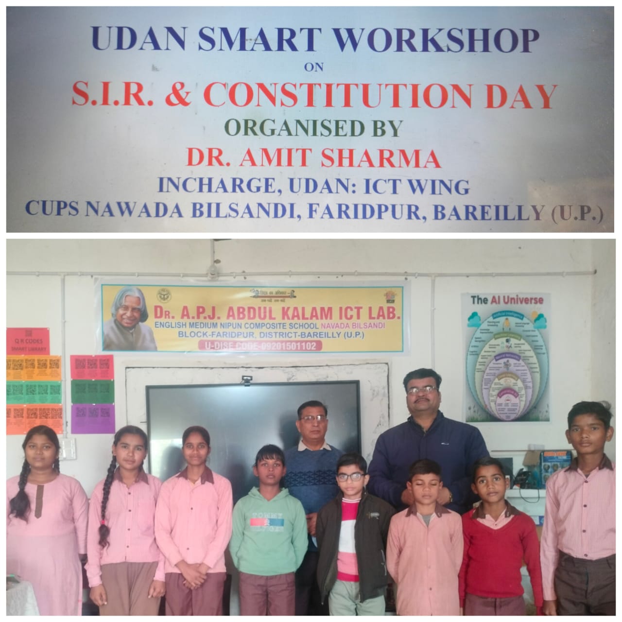 बरेली। एडी बेसिक, डीआईओएस, बरेली डॉक्टर अजीत कुमार, बीएसए डॉ. विनीता और बीईओ फरीदपुर शीश पाल सिंह के निर्देशन में इंग्लिश मीडियम कंपोजिट निपुण स्कूल नवादा बिलसंडी में एसआईआर व संविधान दिवस पर स्मार्ट वर्कशॉप का आयोजन