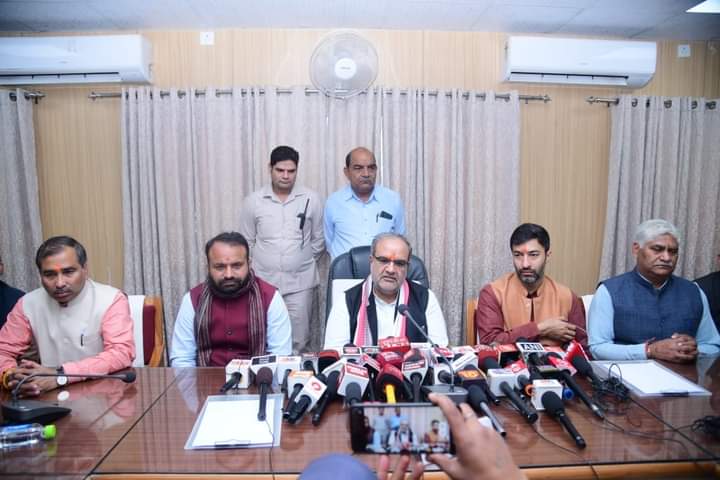 सहारनपुर- सहारनपुर अपने अचानक दौरे पर आये उत्तर प्रदेश भाजपा अध्यक्ष चौधरीभूपेंद्रसिंह पूर्व मंत्री ने सहारनपुर पँहुचकर माता शाकम्भरी के दर्शन पूजन कर उनके दरबार से भाजपा ने निकाय चुनाव का शंखनाद कर दिया है। सर्किट हाउस सहारनपुर में पत्रकारों को संबोधित करते हुए भाजपा प्रदेश अध्यक्ष चौधरी भूपेंद्र सिंह ने कहा कि भाजपा निकाय चुनाव में अपने सिंबल पर चुनाव लड़ेगी सभी वार्डो में लड़ने वाले प्रत्याशियों को भाजपा अपना सिंबल देगी इस बार 17 नगर निगम और 200 नगर पालिका में अपना विजय का झंडा फहरायेगे। मतदाता सूची जारी कर आरक्षण तय किया जाएगा 15 से 20 दिसंबर के बीच निकाय चुनाव संपन्न हो जाएंगे यूपी की 25% आबादी निकाय चुनाव में प्रतिभा करेगी 2017 में 200 नगर पालिका में से 72 नगरपालिका में भाजपा ने जीत हासिल की थी और 16 में से 14 नगर निगम पर भाजपा की विजय हुई थी इस बार शाहजहांपुर नगर निगम की नई सीट बनने से 17 नगर निगम में चुनाव होगा। उन्होंने कहा हमारी प्राथमिकता चीनीमिलो को चलाना है उनको बंद करना नहीं हैं। जबकि उत्तर प्रदेश में पूर्व की सरकारों ने चीनीमिलो को ओने पोने दामों पर बेच दिया था, बंद कर दिया था, और गन्ना मूल्य रेट भी जल्दी तय होंगे ।मोदी और योगी सरकार ने बिना किसी भेदभाव के तमाम योजनाओं का लाभ हर वर्ग तक पहुंचाया है और इसी आधार पर आज जनता के बीच में हैं। उन्होंने कहा कि भाजपा के पदाधिकारियों कार्यकर्ताओं को जीत का फार्मूला समझाया जाएगा ताकि वह इस उपचुनाव में जीत का परचम फहरायें और अगले माह होने वाले निकाय चुनाव में भी सभी सीटों पर जीत हासिल करेंगे।