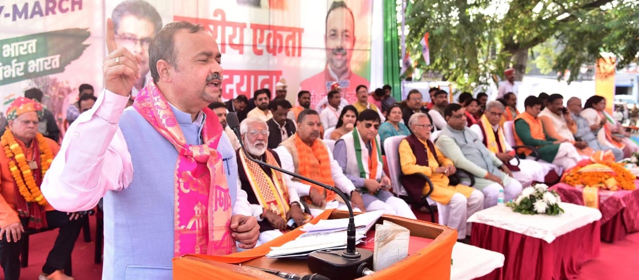 बरेली। लौह पुरुष सरदार वल्लभ भाई पटेल की 150वीं जयंती के उपलक्ष्य में शहर विधानसभा क्षेत्र में वन एवं पर्यावरण मंत्री डॉ अरुण कुमार के नेतृत्व में बुधवार को पूर्वाह्न 11 बजे से यूनिटी मार्च पदयात्रा जश्न मनाते हुए निकाली। हाथों में तिरंगे लिए हजारों लोगों के बीच 20 मीटर लंबे तिरंगा को लहराते हुए शहर में पदयात्रा निकाली गई तो कुछ छ घंटे के लिए माहौल देशभक्ति के रंग में रंग गया। पदयात्रा के समापन पर मनोहर भूषण इंटर कॉलेज के मैदान पर जनसभा आयोजित की गई। जनसभा में बतौर मुख्य अतिथि पहुंचे जिला प्रभारी मंत्री एवं सहकारिता मंत्री जेपीएस राठौर का स्वागत वन मंत्री डॉ अरुण कुमार ने किया। प्रभारी मंत्री ने कहा कि सरदार वल्लभ भाई पटेल का जीवन-दर्शन आज भी देश की एकता और अखंडता के लिए प्रेरक है। युवा पीढ़ी को सरदार पटेल के योगदान से सीख लेकर राष्ट्रनिर्माण मे आगे आना चाहिए। प्रभारी मंत्री ने संबोधन में कांग्रेस पर जमकर हमला किया। कहा कि आजादी के बाद कुछ लोग देश को एकजुट होने नहीं दे रहे थे, तब सरदार वल्लभ भाई पटेल ने 563 रियासतों को एकजुट कर अखंड भारत का निर्माण किया था। वन मंत्री अरुण कुमार ने कहा, आज देश में ऐसे व्यक्तित्व के धनी व्यक्ति की 150वीं जयंती मनाई जा रही है। जिसको इस देश की एकता का सूत्रधार कहा जाता है। भाजपा स्वतंत्रता सेनानी, देश के पहले उप प्रधानमंत्री सरदार वल्लभभाई पटेल को उनकी जयंती पर नमन कर श्रद्धांजलि दे रही है। इससे पहले सांसद छत्रपाल सिंह गंगवार व वन मंत्री डॉ. अरुण कुमार ने हरी झंडी दिखाकर शिवाजी चौक से पदयात्रा का शुभारंभ किया। पदयात्रा स्वयंवर बरातघर से झूले लाल द्वार होते हुए शहीद पंकज अरोरा चौक पहुंची। सूद धर्मकांटा मार्ग से मनोहर भूषण इंटर कॉलेज पहुंचकर पदयात्रा का समापन हो गया। पदयात्रा का विभिन्न स्थानों पर संगठनों व व्यापारी वर्गों ने पुष्प वर्षा कर स्वागत किया। पदयात्रा में भाजपा कार्यकर्ताओं, छात्र-छात्राओं, स्काउट गाइड कैडेट, एनसीसी व एनएसएस के कैडेट ने प्रतिभाग किया। पदयात्रा मे महापौर डॉ. उमेश गौतम, जिला पंचायत अध्यक्ष रश्मि पटेल, कैंट विधायक संजीव अग्रवाल, महानगर अध्यक्ष अधीर सक्सेना, अनिल सक्सेना, श्रुति गंगवार, गुलशन आनंद, डॉ केएम अरोड़ा, पूरन सिंह लोधी, प्रतेश पांडेय, पंडित राम गोपाल मिश्रा, विष्णु अग्रवाल, देवेन्द्र जोशी, पुष्पेंद्र पटेल, अजय मौर्य, राजीव कश्यप, बृजेश प्रताप सिंह, अमन सक्सेना, नीलम जेठा, संजीव शर्मा, सचिन सक्सेना, राजीव गुप्ता मौजूद रहे।।