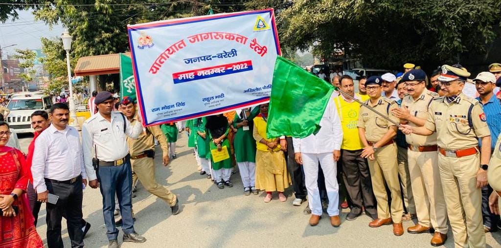 बरेली। एक नवंबर से 20 नवंबर तक चलने वाले यातायात माह का सोमवार को चौकी चौराहा से एडीजी राजकुमार ने फीता काटकर शुभारंभ किया। एडीजी राजकुमार ने चौकी चौराहे पर जागरूकता रैली को हरी झंडी दिखाई। इस दौरान लोगों को बताया गया कि ट्रैफिक नियमों के उल्लंघन पर 19 हजार रुपये तक का जुर्माना हो सकता है। इसलिए एक महीने तक जागरूकता अभियान चलाया जाएगा। यातायात जागरुकता के लिए एडीजी राजकुमार ने छात्र,छात्राओं, गणमान्य व्यक्तियों को यातायात नियमों से सम्बंधित जानकारियां दी गई। इस दौरान इस्लामिक गर्ल्स इंटर कालेज बरेली, जीआईसी बरेली, जीजीआईसी बरेली, पुलिस मॉडर्न स्कूल के छात्र,छात्राएं व प्रशिक्षु आरक्षी (फायरमैन) की यातायात जागरूकता रैली मे शामिल रही। रैली चौकी चौराहे से पटेल चौक होकर चौपुला चौराहे पर समाप्त हुई। सुरक्षित यातायात सुनिश्चित कराने हेतु लोगों को हेलमेट पहनने, सेफ्टी बेल्ट लगाने, सावधानी पूर्वक रोड पर चलने, यातायात नियमों का पालन करने हेतु सुझाव दिया गया और रोड सेफ्टी के प्रति जागरूक किया गया। इस दौरान एसएसपी अखिलेश चौरसिया, एसपी सिटी राहुल भाटी, एसपी ट्रैफिक राम मोहन सिंह समेत अन्य अफसर एवं सभी सीओ मौजूद रहे।।