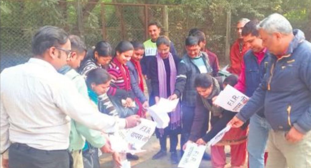 बरेली। दिल्ली के जंतर-मंतर पर पुरानी पेंशन बहाली व आरटीई से पूर्व टीईटी के विरोध में अटेवा, एनएमओपीएस का 25 नवंबर को शांतिपूर्ण धरना आयोजित किया गया था। इसके बावजूद वरिष्ठ पदाधिकारियो सुखजीत सिंह, विजेंद्र धारीवाल, सर्वजीत सिंह, रूपेश पर मुकदमा दर्ज किया गया। इसके विरोध मे अटेवा बरेली जिला संयोजक डॉ. मुनीष कुमार गंगवार के नेतृत्व में जिले के सभी शिक्षक कर्मचारी अपने-अपने कार्यस्थलों पर एफआईआर की प्रतीकात्मक कॉपी जलाकर विरोध प्रकट किया। डॉ. मुनीष कुमार गंगवार ने कहा कि शांतिपूर्ण ढंग से अपनी बात रखना प्रत्येक नागरिक का संवैधानिक अधिकार है। सभी ने निर्दोष साथियों पर दर्ज एफआईआर तत्काल वापस लेने की मांग की। जिले के सभी शिक्षक, कर्मचारी और अधिकारियों ने अपने अपने कार्यस्थलों पर एफआईआर की प्रतीकात्मक कॉपी जलाकर विरोध किया और सरकार से अपील की सभी साथियों पर दर्ज एफआईआर को वापस लेकर शांतिपूर्ण आंदोलन के अधिकार का सम्मान किया जाए। स्पष्ट किया कि न्याय न मिलने तक आंदोलन जारी रहेगा।।