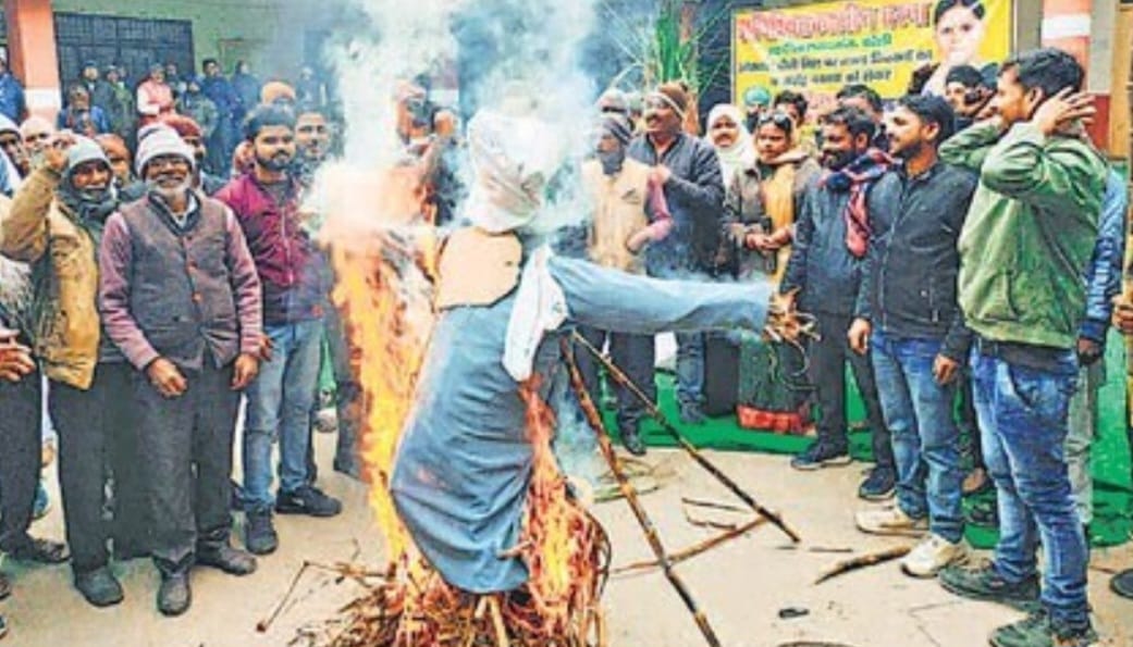 किसानों ने गन्ना मंत्री का फूंककर जोरदार प्रदर्शन, अनदेखी कर रहे अधिकारी
