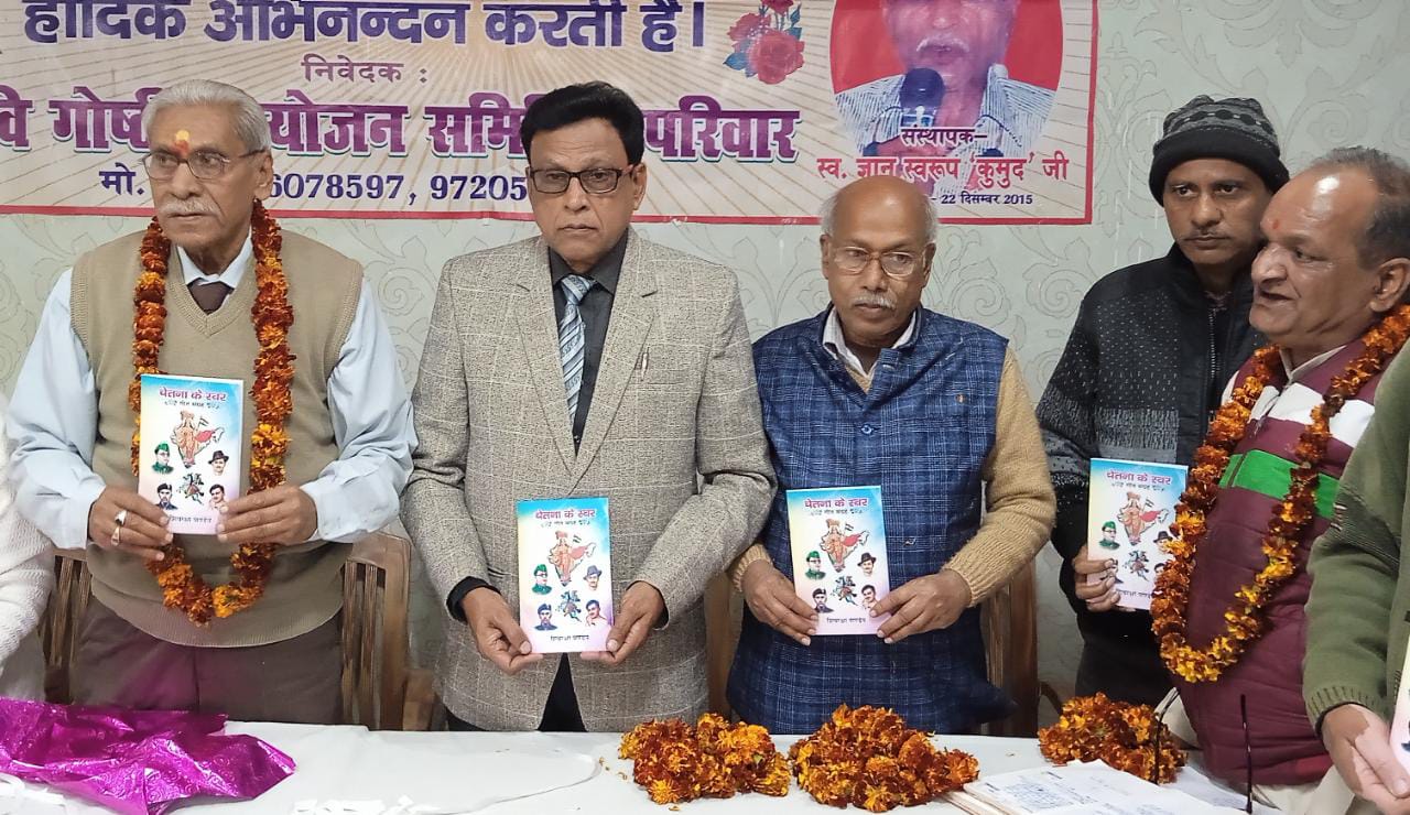 बरेली। कवि गोष्ठी आयोजन समिति के तत्वावधान में रविवार को स्थानीय दर्जी चौक स्थित नारायण गेस्ट हाउस मे वरिष्ठ कवयित्री शिवरक्षा पांडेय द्वारा रचित पुस्तक चेतना के स्वर का लोकार्पण कवि सम्मेलन एवं सम्मान समारोह का आयोजन किया गया। जिसकी अध्यक्षता संस्थाध्यक्ष रणधीर प्रसाद गौड़ ‘धीर’ ने की। मुख्य अतिथि वरिष्ठ समाजसेवी सुरेंद्र बीनू सिन्हा रहे। मां शारदे के चित्र पर माल्यार्पण एवं दीप प्रज्ज्वलित कर कार्यक्रम का शुभारंभ हुआ। संस्था द्वारा साहित्य के क्षेत्र मे उत्कृष्ट योगदान के लिए डॉ. महेश मधुकर को काव्य शिरोमणि, राम कृष्ण शर्मा को काव्य रत्न उपाधि, बृजेंद्र तिवारी ‘अकिंचन’ को साहित्य रत्न उपाधि एवं डॉ. राजेश शर्मा ककरेली को काव्य कलाधर सम्मान से अलंकृत किया। सम्मानित साहित्य मनीषियों को उत्तरीय, प्रशस्ति पत्र एवं स्मृति चिन्ह संस्थाध्यक्ष रणधीर प्रसाद गौड़ ‘धीर’, सचिव उपमेंद्र सक्सेना एडवोकेट एवं कार्यक्रम- संयोजिका शिवरक्षा पांडेय ने प्रदान किया। इस अवसर पर वरिष्ठ कवयित्री शिव रक्षा पांडेय की पुस्तक “चेतना के स्वर” का लोकार्पण अतिथियों द्वारा किया गया। वरिष्ठ साहित्यकार डॉ. महेश मधुकर, साहित्यकार डॉ राजेश शर्मा ककरेली, विनोद कुमार पांडे, निर्भय सक्सेना, वेद प्रकाश शर्मा अंगार, सुभाष रावत ‘राहत बरेलवी’, ब्रह्मा पांडे, जगदीश निमिष, अमित मनोज, पीयूष गोयल ‘बेदिल’, मिलन कुमार आदि उपस्थित रहे। संचालन मनोज दीक्षित टिंकू ने किया।।