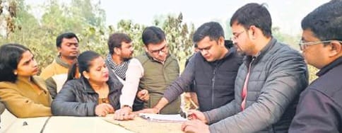 टीम को देखकर भागे दबंग, बारात घर की जमीन का हुआ चिह्नांकन