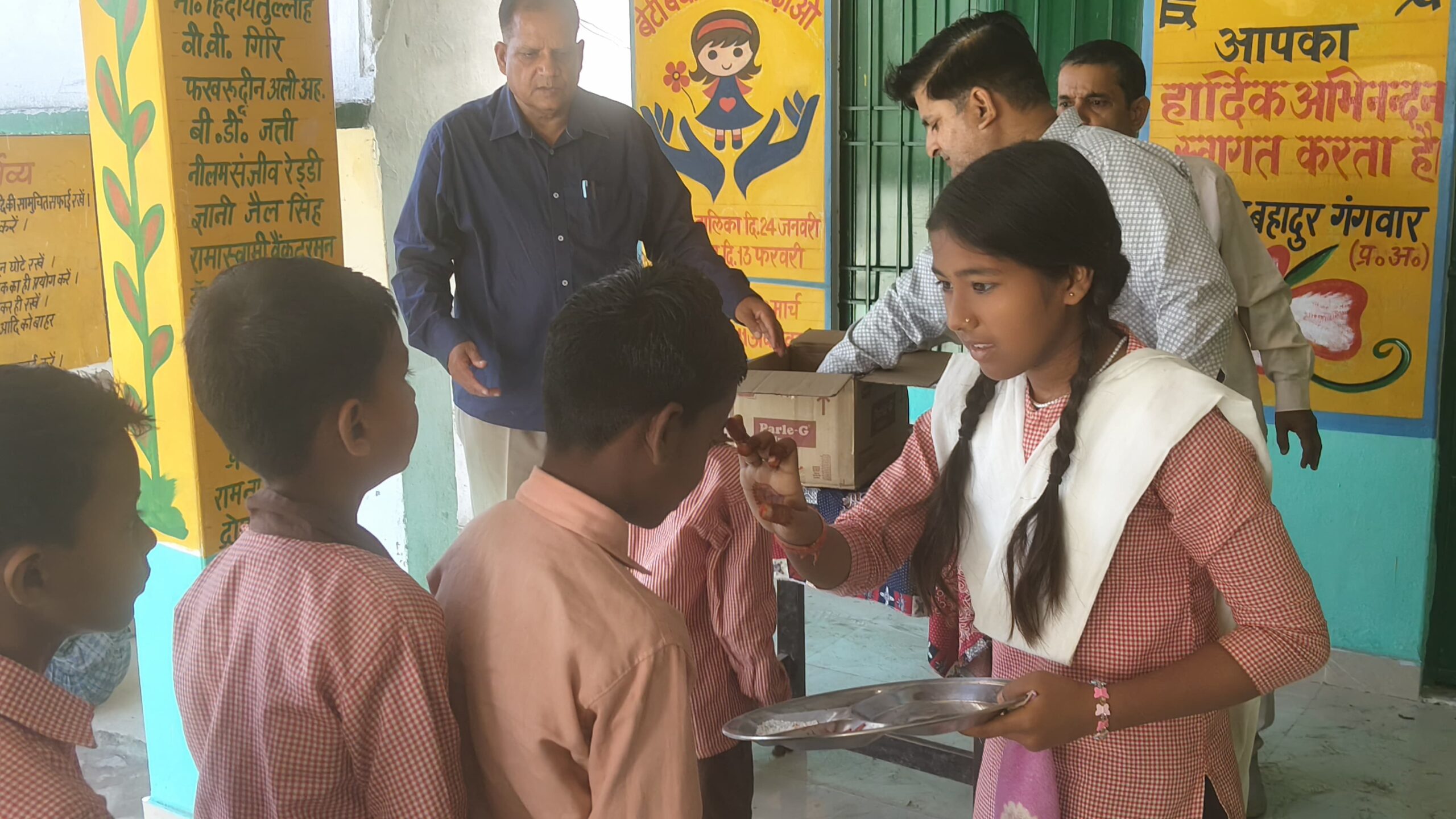 तिलक लगाकर नये सत्र में बच्चों का कंपोजिट विद्यालय जोगीठेर में किया गया स्वागत