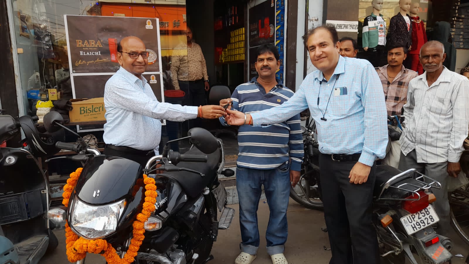 धर्मपाल प्रेमचन्द्र लिमिटेड द्बारा बाबा इलायची स्कीम के विजेता अर्जुन जायसवाल को सौंपी बाईक
