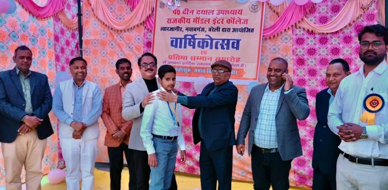 नवाबगंज, बरेली। पंडित दीनदयाल उपाध्याय राजकीय मॉडल इंटर कॉलेज, त्वार जागीर, नवाबगंज मे वार्षिकोत्सव एवं प्रतिभा सम्मान समारोह का आयोजन किया गया। कार्यक्रम के मुख्य अतिथि विधायक डॉ. एमपी आर्य रहे। विशिष्ट अतिथि के रूप मे सह जिला विद्यालय निरीक्षक डॉ. गिरीश चंद्र यादव एवं जिला समन्वयक समग्र शिक्षा (माध्यमिक) वीरेंद्र गंगवार उपस्थित रहे। कार्यक्रम का शुभारंभ मां सरस्वती के चित्र पर माल्यार्पण व दीप प्रज्वलन से हुआ। छात्र-छात्राओं ने सरस्वती वंदना, स्वागत गीत व रंगारंग सांस्कृतिक प्रस्तुतियां दी। मुख्य अतिथि विधायक डॉ. एमपी आर्य ने विद्यालय के क्रियाकलापों और बच्चों के उत्कृष्ट प्रदर्शन की सराहना करते हुए कहा कि ग्रामीण क्षेत्र मे प्रतिभाओं की कोई कमी नही होती बस उन्हें उचित अवसर और प्रोत्साहन मिलना चाहिए। विशिष्ट अतिथि एडीआईओएस डॉ. गिरीश चंद्र यादव और जिला समन्वयक समग्र शिक्षा माध्यमिक वीरेंद्र गंगवार ने विद्यार्थियों को सोशल मीडिया के दुष्प्रभाव से बचते हुए पढ़ाई पर केंद्रित रहने का संदेश दिया। प्रधानाचार्य डॉ. अवनीश यादव ने विद्यालय की वार्षिक आख्या प्रस्तुत की। मुख्य अतिथि ने विद्यार्थियों की प्रतिभा की सराहना करते हुए उन्हें प्रोत्साहित किया। कार्यक्रम में मेधावी छात्रों को सम्मानित किया गया तथा निर्धन बच्चों को स्वेटर वितरित किए। संचालन विद्यालय के प्रवक्ता ब्रह्मा शंकर शुक्ला ने किया। आयोजन को सफल बनाने मे शिक्षक दिलीप कुमार, भूपेन्द्र गंगवार, रामेंद्र गंगवार, प्रताप, भानु, राहुल, अनूप का सहयोग रहा।।