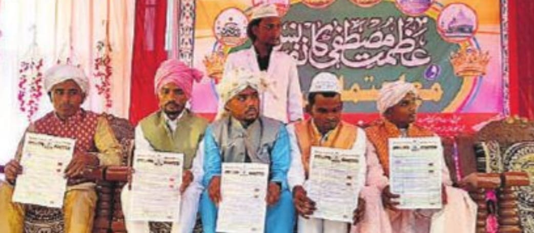 नवाबगंज, बरेली। जनपद के थाना नवाबगंज क्षेत्र मे आरएसी ट्रस्ट और आल इंडिया रजा एक्शन कमेटी की ओर से गुरुवार को समुहा गांव में पांच जोड़ों का सामूहिक निकाह कराया गया। क्षेत्र के समुहा गांव की नाजिया का चंदपुर ढोरिया गांव के रियाज अहमद, गुड़िया उर्फ हिना बाकरगंज जनपद पीलीभीत का फिरोजपुर गांव के उस्मान, हजियापुर की इकरा बी का बाकरगंज के मोहम्मद इरफान, किच्छा की फन्नम बी का लाडपुर उस्मानपुर के यूसुफ, ईसापुर धौरा की मंतशा बी का रत्ना चुन्नीलाल के मोहम्मद उवैस के साथ निकाह पढ़ाया गया। निकाह के बाद बेटियों को जरूरत का सामान देकर ससुराल रुख्सत किया गया। नबीरा-ए-आला हजरत एवं आरएसी के राष्ट्रीय अध्यक्ष मौलाना अदनान रजा कादरी की अध्यक्षता में हुए कार्यक्रम में हजरत अफरोज रजा कादरी व अदनान रजा कादरी गांव पहुंचे तो उनका जोरदार स्वागत किया गया। अदनान रजा ने निकाह के बाद खुतबा पढ़ा और खुसूसी दुआ फरमाई। उन्होंने कहा कि आरएसी ने खुशनसीब बेटियों के निकाह का बीड़ा उठाया है। आरएसी इन कोशिशों को आगे भी जारी रखेगी। कार्यक्रम में मौलाना सलीम रजा, मुफ्ती उमर रजा, हाफिज इमरान रजा बरकाती, मुशाहिद रफत, सय्यद मुशर्रफ, डॉ. सय्यद महफूज अली, हनीफ अजहरी, राजू बाबा, मुजफ्फर अली, मुईद रजा, गुलहसन, सय्यद रिजवान, मुहम्मद जुनैद, मुहम्मद सईद, काशिफ रजा, गुलाम मुहम्मद, उवैस खां, मौलाना सय्यद तौकीर रजा, मौलाना सय्यद सफदर रजा, हाफिज आरिफ, आसिफ रजा, बीडीसी सदस्य कृष्णपाल राठौर व नरेश पाल, पूर्व प्रधान शिवदयाल मौर्य, प्रवेश मौर्य, नरेश गंगवार, हेमराज कश्यप, प्रदीप कश्यप आदि मौजूद रहे।।