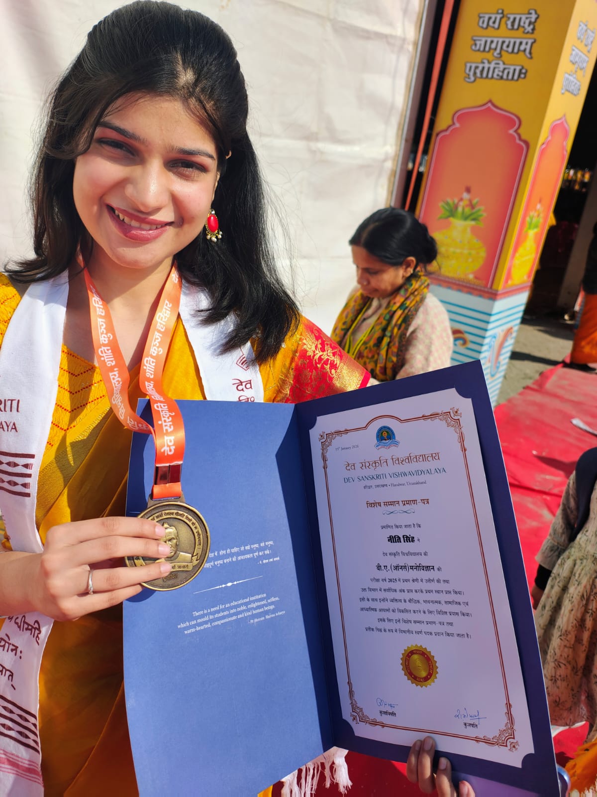 बरेली। देव संस्कृत विश्वविद्यालय, हरिद्वार से बीए (आनर्स) सायकोलॉजी में वर्ष 2025 में प्रथम श्रेणी के साथ अपने विभाग में सर्वाधिक अंक प्राप्त कर नीति सिंह ने स्वर्ण पदक हासिल कर अपने माता-पिता और पूरे परिवार का मान बढ़ाया है। यह उपलब्धि उनकी कड़ी मेहनत, अनुशासन और निरंतर लगन का परिणाम है।
