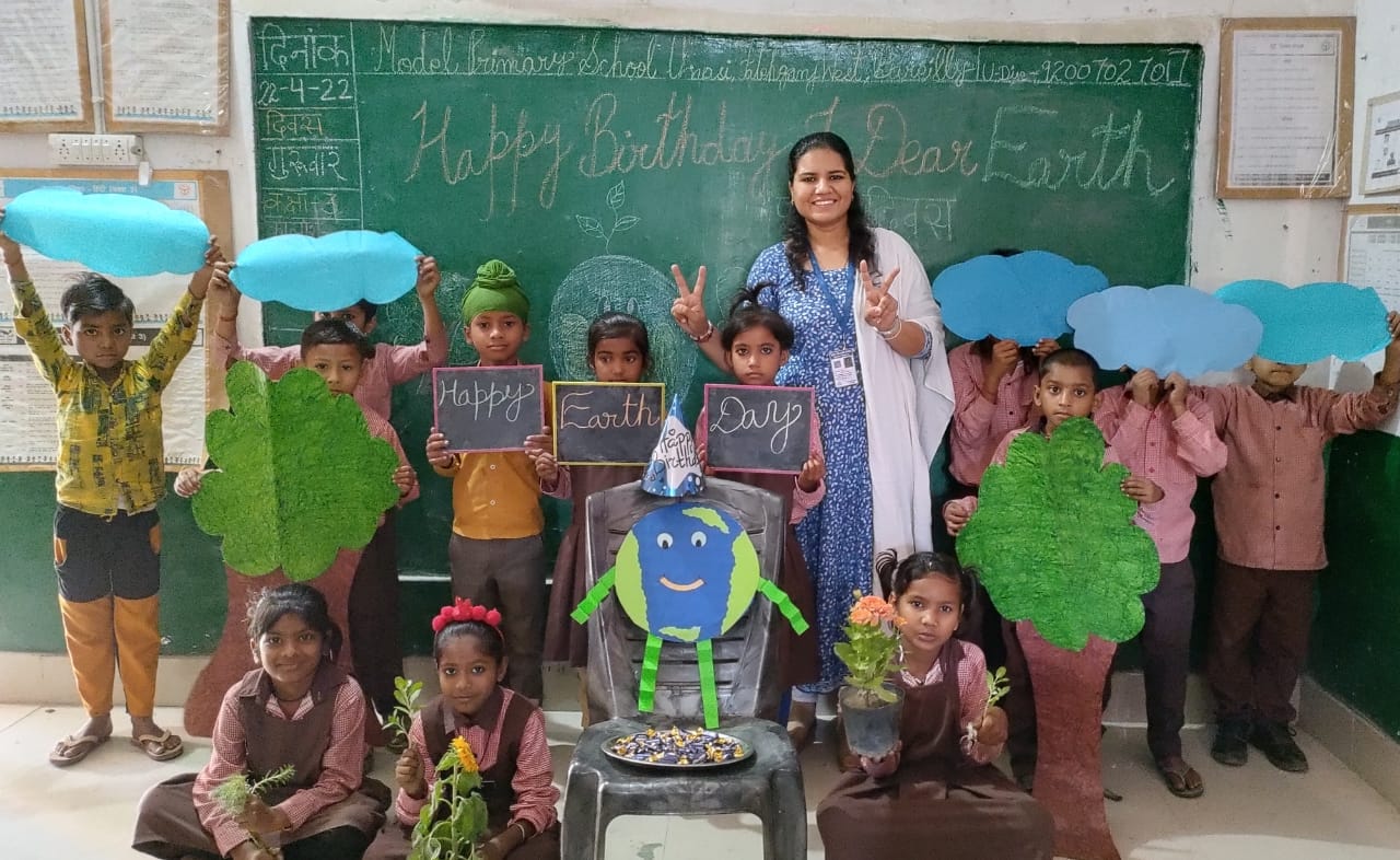 बरेली/फतेहगंज पश्चिमी। पृथ्वी दिवस के अवसर पर क्षेत्र के मॉडल प्राथमिक विद्यालय उनासी के बच्चों ने पृथ्वी के जन्मदिन के रूप मे मनाया। स्कूल की राज्य पुरस्कार प्राप्त शिक्षिका सुश्री नम्रता वर्मा ने सभी बच्चों को पृथ्वी दिवस के बारे में जानकारी दी। जिसे बच्चों ने बहुत ही ध्यान से सुना। इसमे बच्चों को पर्यावरण के साथ हो रही छेड़छाड़ और अनदेखी के गंभीर परिणामों के बारे मे जानकारी दी गयी। इसके बाद बच्चों ने पर्यावरण संरक्षण एवं ग्लोबल वार्मिंग से संबंधित पोस्टरों का निर्माण किया। इसी क्रम मे सभी बच्चों ने मिलकर पृथ्वी से संबंधित क्राफ्ट कार्य में पृथ्वी बनाकर बर्थडे कैप पहनाई। वृक्षों से संबंधित कविता गाई और विद्यालय मे वृक्षारोपण कर पृथ्वी दिवस मनाया। इस अवसर पर प्रधानाध्यापिका ज्योति कुमारी सहित समस्त विद्यालय स्टाफ अशोक कुमार, निताशा सक्सेना, सुनीता वर्मा का सहयोग रहा।।