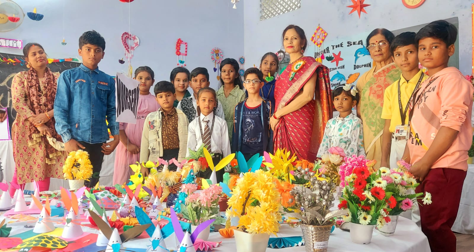स्कूल के बच्चों द्वारा पेपर क्राफ्ट और वेस्ट मेटीरियल से विज्ञान और गणित के विविध माडल प्रस्तुत किए गए।
