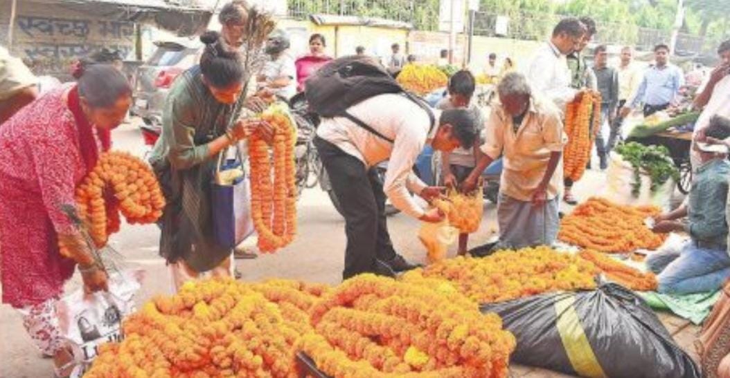 बरेली। जनपद मे दिवाली पर फूलों का बाजार सजकर तैयार है। आम दिनों में अपेक्षा फूलों की बिक्री कई गुना बढ़ गई है। कीमतों में भी इजाफा हुआ है। इससे व्यापारियों के चेहरे खिले हुए हैं। जिले में माल बाजार भी भेजा जा रहा है। जिले में देवचरा व शहर की मंडी में फूलों का कारोबार होता है। देवचरा मंडी के कारोबारी नत्थू विकल बताते हैं कि जिले में बड़े पैमाने पर गुलाब व गेंदे के फूलों की खेती होती है। यहां से दिल्ली, राजस्थान, मध्य प्रदेश उत्तराखंड, हरियाणा समेत अन्य राज्यों को माल जाता है। गेंदा और गुलाब दोगुने दाम पर पहुंच गया। शनिवार को शहर में गेंदा 70 और गुलाब 200 रुपये किलो बिका था, मगर रविवार को गेंदा 150 रुपये और गुलाब 400 रुपये किलो बिका। वहीं शहर की जिला अस्पताल रोड, व मनिहारन वाली गाली में लगने वाली लगाने वाले फूलों के बाजार में रौनक रही। फूल व्यापारी राजेश कुमार सैनी ने बताया कि दिवाली में फूलों के दाम दोगुने हो गए हैं। नरक चतुर्थी व दीपावली पर फूलों की बिक्री अधिक रहेगी। फूल विक्रेताओं ने बताया कि बरेली से पिथौरागढ़, हल्द्वानी, अल्मोड़ा, पलिया समेत कई स्थानों से फूल आते हैं। शहर में अजमेर, भीकमपुर, हाथरस, लखनऊ, बदायूं के लभारी के किसान भी फूल लेकर पहुंचते हैं। रविवार को करीब 150 क्विंटल फूलों की बिक्री होने का अनुमान है। दिवाली पर मां लक्ष्मी को कमल का फूल चढ़ाने जाता है। रविवार को बाजार में करीब 500 फूल आएंगे, जिसकी कीमत थोक में करीब 50 से 70 रुपये के बीच रहेंगी।।