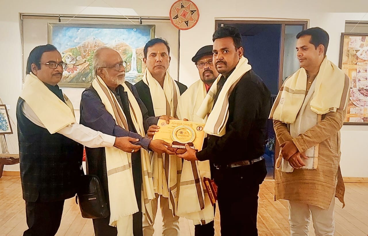 बरेली- कला संकुल आर्ट गैलरी दिल्ली में कलारत्नम फाउंडेशन ऑफ आर्ट सोसाइटी बरेली एवं संस्कार भारती बरेली द्वारा आयोजित कला प्रदर्शनी में बहेड़ी के चित्रकार प्रदीप झा की कलाकृति की प्रख्यात चित्रकार पद्मश्री बिमन दास ने खूब सराहना की और प्रदीप झा को शाल उढ़ाकर व स्मृति चिन्ह देकर सम्मानित किया साथ ही उन्होंने कहा सभी कलाकारों की कला कृतियां बहुत ही सुंदर हैं और उन्होंने सभी कलाकारों के लिए भविष्य में और अधिक ऊंचाइयों तक जाए ऐसी शुभकामनाएं दीं।