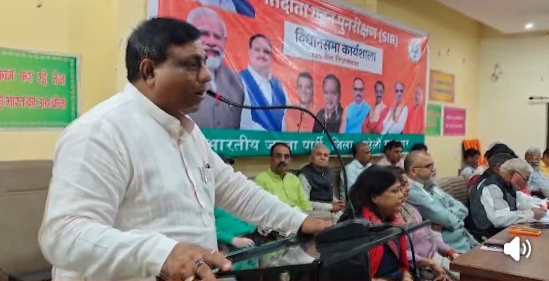 बरेली। एसआईआर के संबंध मे जानकारी देने के लिए भाजपा की ओर से कैंट विधानसभा क्षेत्र के मढ़ीनाथ मंडल की संयुक्त कार्यशाला एक बैंक्वेट हाल में आयोजित की गई। महानगर अध्यक्ष अधीर सक्सेना की अध्यक्षता में सोमवार को हुई कार्यशाला की शुरुआत मुख्य अतिथि कैंट विधायक एवं प्रदेश सह कोषाध्यक्ष संजीव अग्रवाल ने की। कैंट विधायक ने कहा कि सभी पदाधिकारी एवं कार्यकर्ता ईमानदारी से बीएलओ के साथ मिलकर मतदाता सूची को तैयार करे। किसी का भी वोट बनने से रहना नही चाहिए। निर्वाचन अधिकारी की ओर से जो भी दिशा निर्देश दिए गए है। उसका पालन करते हुए मतदाता सूची तैयार करे। महानगर अध्यक्ष ने आगामी कार्यक्रमों की जानकारी देते हुए कहा कि पार्टी के स्तर से जो भी कार्यक्रम आए हैं, हमें उनको पूर्ण व्यवस्थित करना है। कैंट विधानसभा संयोजक डॉ. सीपीएस चौहान ने कहा कि एसआईआर कार्यक्रम के तहत कैंट विधानसभा की सारी व्यवस्थाएं पूर्ण हो चुकी हैं। इस अवसर क्षेत्रीय मंत्री हरिओम पाराशर, अरुण कश्यप, देवेन्द्र जोशी, सोनू कालरा, अमरीश कठेरिया, विष्णु शर्मा, जेपीएस पाल, सौरभ कुमार, श्याम सिंह, ब्रजेश पाल, दरबारी लाल, चन्द्रपाल आर्य, चित्रा मिश्रा, संतोष कश्यप, नरेंद्र मौर्य, राम निवास आर्य, शिशुपाल कठेरिया, हरीश वाल्मीकि, भरत मूलचंदानी आदि मौजूद रहे।।