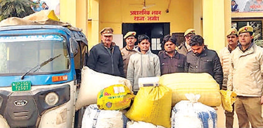 भमोरा, बरेली। जनपद के थाना भमोरा पुलिस टीम ने तीन तस्करों को 91 किलो डोडा के साथ गिरफ्तार कर लिया। मुकदमा दर्ज कर तीनों को जेल भेज दिया। थानाध्यक्ष सनी चौधरी ने बताया शुक्रवार सुबह करीब नौ बजे देवचरा बल्लिया रोड पर गश्त कर रहे थे, तभी एक टेंपो आता दिखा। जिसमें 6 से 7 कट्टे लोड थे। संदिग्ध लगने पर टेंपो रोकने को कहा लेकिन उसमें सवार लोग भागने लगे। जिस पर पुलिस टीम ने पीछाकर टेंपो सवार तीन लोगों को पकड़ लिया। टेंपो की तलाशी ली गई। उन बोरों मे डोडा चूर्ण मिला। पूछताछ में आरोपियों ने अपने नाम नईम, अजरूद्दीन व सलमान निवासी बल्लिया बताया। पुलिस ने आरोपियों के पास से 91 किलो डोडा चूर्ण बरामद किया। जिसकी कीमत करीब पंद्रह लाख रुपये बताई जा रही है। पूछताछ में आरोपियों ने बताया कि वे डोडा दातागंज क्षेत्र से खरीद कर लाते थे। जिसे चूरा बनाकर आसपास के ढाबे, होटल, दुकानों व ट्रक ड्राइवरों को सप्लाई करते थे। जिससे उन्हें मुनाफा होता था। पुलिस ने तीनों को कोर्ट में पेश किया। जहां से उन्हें जेल भेज दिया गया।।