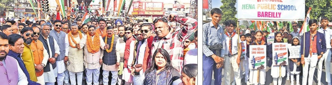 भाजपाइयों ने हाथों मे तिरंगा लेकर निकाली पदयात्रा, दिया एकता का संदेश