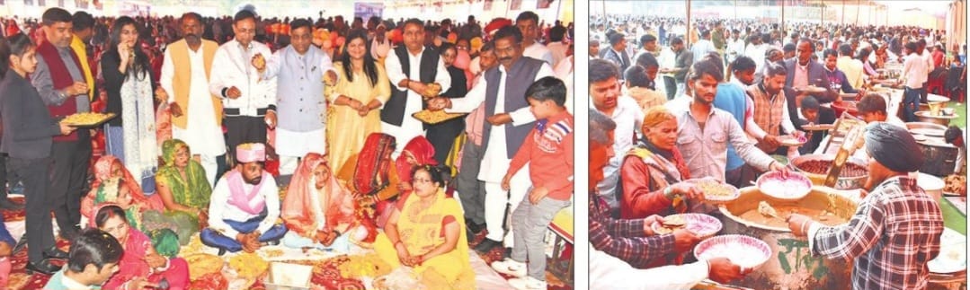 बरेली। मुख्यमंत्री सामूहिक विवाह कार्यक्रम के दूसरे दिन मंगल गीतों के साथ शहनाई बजी। ढोल-बताशों की धुन के बीच बरेली कॉलेज के मैदान पर 485 जोड़ों का विवाह हुआ। 349 जोड़ों ने सात फेरे लिए तो 136 जोड़ों का निकाह हुआ। सभी को उपहार देकर विदा किया गया। बरेली कॉलेज मे शुक्रवार को विवाह के लिए 547 जोड़ों को बुलाया गया था। इनमें से 485 का विवाह हुआ। करीब 50 जोड़े अनुपस्थित रहे। शेष का बायोमैट्रिक सत्यापन फेल हो गया। बायोमैट्रिक के लिए वर-वधु देर तक लाइन में लगे रहे। इस दौरान जिला पंचायत अध्यक्ष रश्मि पटेल ने कहा कि प्रधानमंत्री और मुख्यमंत्री ने देश की बेटियों के सम्मान और उनके उज्ज्वल भविष्य के लिए संकल्प लिया है। उसी का परिणाम है कि आज इस प्रकार के भव्य आयोजन हो रहे हैं। बिथरी विधायक डॉ राघवेंद्र शर्मा ने कहा कि मुख्यमंत्री प्रदेश के हर घर को अपना घर समझते हैं और उसी भावना से जनकल्याणकारी योजनाओं का संचालन कर रहे है। कैंट विधायक संजीव अग्रवाल ने नवविवाहित जोड़ों को आशीर्वाद दिया। भाजपा जिलाध्यक्ष आंवला आदेश प्रताप सिंह, सीडीओ देवयानी, डीडीओ दिनेश यादव, जिला समाज कल्याण अधिकारी सुधांशु शेखर, परियोजना निदेशक डीआरडीए चंद्र प्रकाश श्रीवास्तव और डीपीआरओ कमल किशोर, परियोजना निदेशक डीआरडीए तेजवंत सिंह, डीआईओएस डा. अजीत सिंह, डीपीओ मनोज कुमार आदि समेत अन्य जनप्रतिनिधियों, समाजसेवियों और अधिकारियों ने नवविवाहित जोड़ों को आशीर्वाद दिया।।