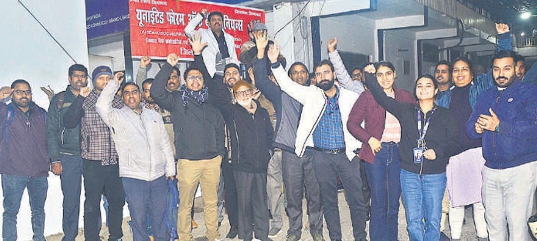 मांगों को लेकर बैंक कर्मियों का प्रदर्शन, नही मानी सरकार तो होगी राष्ट्रव्यापी हड़ताल
