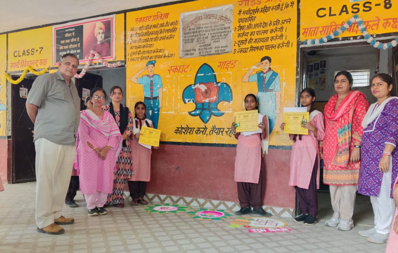 बरेली- कंपोजिट विद्यालय जोगी देर के परिसर में आज जूनियर स्तर की रंगोली प्रतियोगिता का आयोजन किया गया जिसमें कक्षा 8 की अर्शी ने प्रथम स्थान प्राप्त किया दूसरे स्थान पर शिफा तथा तीसरे स्थान पर दिलकश रही मुख्य बात यह रही हिंदुओं के इस पर्व में मुस्लिम बच्चों ने बढ़-चढ़कर प्रतिभा किया और तीनों स्थान पर मुस्लिम लड़कियों ने ही बाजी मारी.. विद्यालय के प्रधानाध्यापक राष्ट्रपति पुरस्कार प्राप्त शिक्षक लाल बहादुर गंगवार में कार्यक्रम समन्वयक दीपl गुप्ता के सहयोग से विजेताओं को प्रमाण पत्र एवं पुरस्कार वितरित किए इस अवसर पर प्रमुख रूप से रेनू गंगवार मीनू रस्तोगी रिंपल सिंह रुचि दिवाकर चरण सिंह गौरव गंगवार बेबी तबस्सुम कृष्णा अनिल शर्मा आदि ने पूरे दिन कार्यक्रम में सहयोग दिया यह प्रतियोगिता जूनियर स्तर पर कक्षा बार कराई गई थी