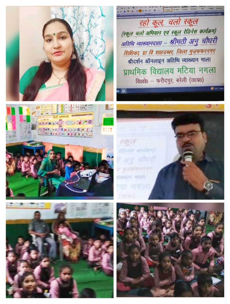 बरेली। बीएसए विनय कुमार एवं खंड शिक्षा अधिकारी फरीदपुर विकास कुमार के निर्देशन में विकास खंड फरीदपुर के प्राथमिक विद्यालय मटिया नगला में श्रीदर्शन ऑनलाइन गेस्ट लेक्चर सीरीज़ के अंतर्गत ‘रहो कूल, चलो स्कूल’ विषय पर ऑनलाइन गेस्ट लेक्चर आयोजित किया गया जिसमें मुज़्ज़फरनगर जिले के प्राथमिक विद्यालय शाहडबबर की शिक्षिका श्रीमती अनु चौधरी ने बच्चों को उपयोगी टिप्स दिये। विद्यालय के प्रधान अध्यापक डॉ. अमित शर्मा ने बताया की श्रीमती अनु चौधरी बहुमुखी प्रतिभा की धनी शिक्षिका हैं। नृत्य, गायन, कविता पाठ के अलावा समाज सेवी भी हैं और अनेक एनजीओ से भी जुड़ी हैं।अनु चौधरी ने स्कूल चलो अभियान, स्कूल रेडीनेस अभियान तथा नवाचारी शिक्षण-अधिगम के विषय में विस्तार से चर्चा की. बच्चों को विद्यालय की उपयोगिता बताते हुए प्रतिदिन विद्यालय आने की अपील भी की व बच्चों की शंकाओं का समाधान किया। बताते चलें कि बेसिक शिक्षा के इतिहास में पहली बार राज्य अध्यापक पुरस्कार, राज्य नवाचारी शिक्षक पुरस्कार तथा राज्य आईसीटी पुरस्कार से पुरस्कृत विद्यालय के प्रधान अध्यापक, डॉ. अमित शर्मा ने अपने पिता की पुण्य तिथि पर पिता की स्मृति में श्रीदर्शन ऑनलाइन अथिति व्याख्यान माला का शुभारंभ किया था। इस व्याख्यान माला में अनेकों विद्वान, प्राचार्य, प्रोफेसर, डॉक्टर एवं अन्य विषय विशेषज्ञ व्याख्यान दे चुके हैं। इसी श्रृंखला में यह ऑनलाइन अतिथि व्याख्यान आयोजित किया गया था। डॉ. अमित शर्मा ने बताया कि अनु जी ने बहुत ही सरल, सरस एवं प्रभावशाली ढंग से अपनी बात रखी व बच्चों ने बड़ी रुचि, सहजता एवं उत्सुकता से स्मार्ट क्लास में अपनी जिज्ञासाओं को शांत किया। इस आयोजन में एसएमसी अध्यक्ष हेमेंद्र सिंह, सहायक अध्यापक लोचन सिंह, राहुल सिंह, विम्लेश्वरी देवी, प्रीति शर्मा, सोमवती, धनदेवी व रूप देवी का विशेष सहयोग रहा।