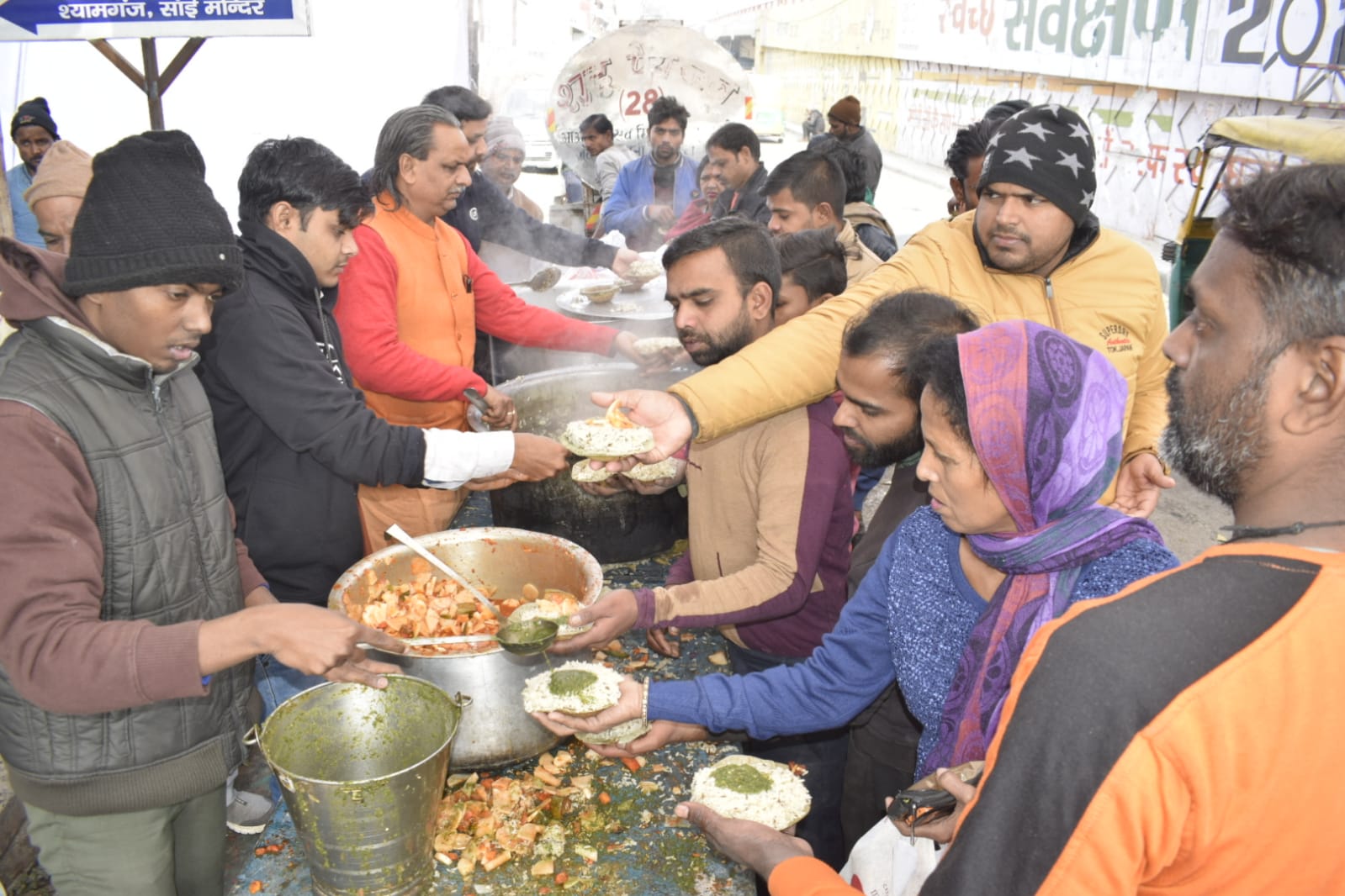 बरेली- साईनाथ बाबा श्याम की असीम अनुकम्पा से मंकर संक्राति के उपलक्ष्य मे बिगत वर्षो की भांति आज श्री शिरडी साई सर्बदेब मंदिर श्यामगंज मे सुबह आठ बजे से रात्रि दस बजे तक अनवरत चौदह घंटे खिचडी महाभोज का आयोजन किया गया ।जिसमे( चौदह कुन्टल चाबल तीन कुन्टल उर्द की दाल पंद्रह पीपा रिफाइन्ड 11 गैस सिलेंडर 10 किलो जीरा तीन किलो हींग दस किलो साबुत मिर्च दो कुन्टल अचार दो कुन्टल मूली) 11 हलबाई खिचडी प्रसाद तैयार करने के लिए लगाए गए ।