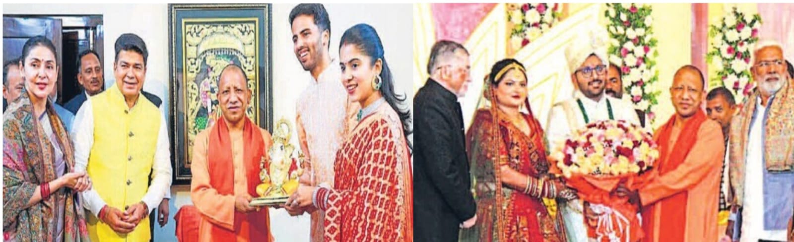 बरेली। मुख्यमंत्री योगी आदित्यनाथ करीब 6:30 बजे झारखंड के राज्यपाल संतोष गंगवार के पुत्र के विवाह समारोह में पहुंचे। उन्होंने नवदंपति को आशीर्वाद दिया। इस दौरान मुख्यमंत्री की तस्वीरें लेने के लिए लोगों की भीड़ जुट गई। करीब दस मिनट आईवीआरआई में रुकने के बाद मुख्यमंत्री एयरपोर्ट रवाना हो गए। इससे पहले मुख्यमंत्री सर्किट हाउस में एसआईआर को लेकर मंडल के जनप्रतिनिधियों के साथ बैठक करने के बाद शाम 6:11 बजे मेयर डॉ. उमेश गौतम के सिविल लाइंस स्थित कैंप कार्यालय वाले घर पर गए। वहां उन्होंने मेयर के नवविवाहित बेटे-बहू को अपना आशीष दिया। वहां से कुछ देर बाद आईवीआरआई रवाना हो गए। मुख्यमंत्री ने नवदंपती को आशीर्वाद दिया। इसके बाद बरेली एयरपोर्ट से राजकीय विमान से लखनऊ के लिए रवाना हो गए। मुख्यमंत्री शहर मे करीब दो घंटे तक रहे। मुख्यमंत्री की सुरक्षा को लेकर पुख्ता इंतजाम किए गए थे। सुरक्षा व्यवस्था में 12 सौ पुलिसकर्मी लगाए गए थे।।