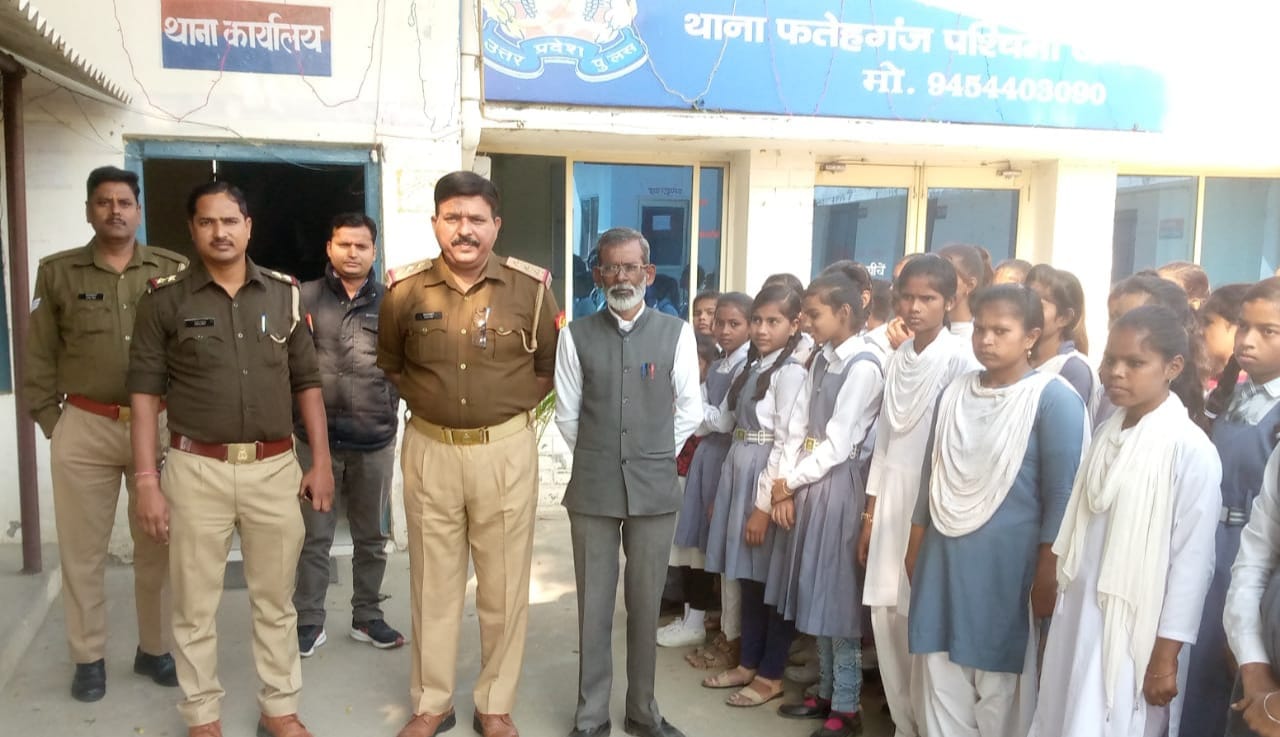 बरेली/फतेहगंज पश्चिमी। पंडित जवाहरलाल नेहरू के जन्मदिवस पर पुलिस विभाग की कार्यशैली, यातायात नियम व बाल श्रम सबंधी जानकारी उपलब्ध करवाने तथा भावी पीढ़ी में जागरूकता लाने के उद्देश्य से सोमवार को प्रशांत पब्लिक स्कूल के छात्र-छात्राओं को फतेहगंज पश्चिमी का भ्रमण करवाया गया। यहां आये छात्रों को बाल मित्र योजना के तहत प्रभारी निरीक्षक राजेश सिंह ने विभागीय कार्यों की जानकारी उपलब्ध करवाई। पुलिस कर्मियों ने आम जन में विश्वास – अपराधियों में डर के मंसूबे को कायम करते हुए विद्यालय के विद्यार्थियों को थाने में बन्दी ग्रह, वायरलेस रूम, बाल मित्र कक्ष, कम्प्यूटर कक्ष, मालखाना इत्यादि के बारे मे जानकारी दी। कुछ बच्चों ने निरीक्षक से सवाल भी पूछे। निरीक्षक ने बच्चों को किसी प्रकार की परेशानी होने पर बेझिझक थाने से सहायता लेने को कहा। उसके बाद सभी बच्चे कई सालों से बंद पड़ी एशिया की मानी हुई रबड़ फैक्ट्री देखने पहुंचे। बही रबड़ फैक्ट्री कॉलोनी मे बने। राधा कृष्ण मंदिर में पहुंचकर भगवान के दर्शन किए। उसके बाद कॉलोनी में बने हाथी पार्क में जाकर बच्चों ने खूब इंजॉय किया। प्रधानाचार्य ओमपाल सिंह यदुवंशी, अध्यापक भानु प्रताप, मुनीश कुमार, अध्यापिका ललिता डोली, प्राची के साथ छात्र छात्राएं मौजूद रहे।।