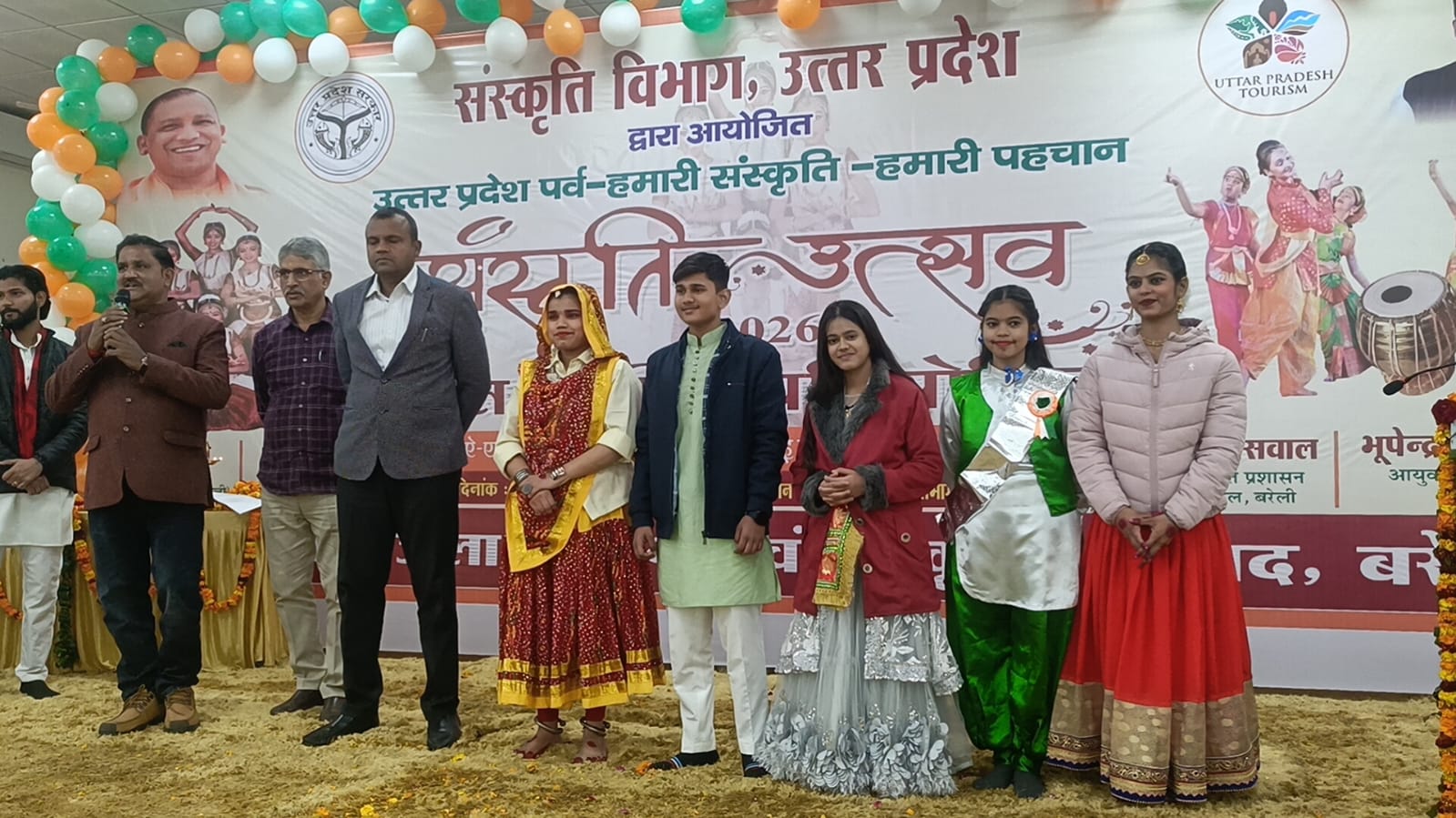 बरेली- संस्कृति विभाग उत्तर प्रदेश द्वारा आयोजित कार्यक्रम उत्तर प्रदेश पर्व – हमारी संस्कृति – हमारी पहचान संस्कृति उत्सव 2026 मंडल स्तरीय प्रतियोगिता का शुभारंभ आयुक्त महोदय बरेली मंडल बरेली श्री भूपेन्द्र एस चौधरी द्वारा डॉ ग्रीश यादव सह जिला विद्यालय निरीक्षक बरेली ,नरेन्द्र कुमार उप निदेशक पर्यटन बरेलीकी उपस्थिति में दीप प्रज्वलित करते हुये मां शारदे को पुष्पांजली अर्पित कर किया गया गया । संस्कृति उत्सव 2026 मण्डल स्तरीय प्रतियोगिता में जनपद बरेली एवं शाहजहांपुर के जिला स्तर पर प्रथम एवं द्वितीय स्थान प्राप्त कलाकारों ने प्रतिभाग किया । कार्यक्रम में कलाकारों ने एकल गायन ,समूह गायन,एकल नृत्य ,समूह नृत्य एकल वादन,समूह वादन में प्रतियोगिता हुई । जिला विद्यालय निरीक्षक द्वारा नामित कार्यक्रम क्रम नोडल अधिकारी मनोज दिवाकर प्रधानाचार्य, पंजीकरण एवं प्रमाण पत्र लेखन में डॉ राजेश कुमार सक्सेना प्रधानाचार्य ,पिंकी दिवाकर ममता कुलपद एवं