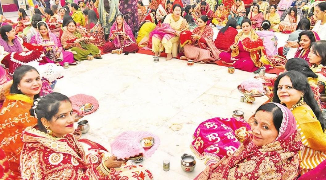 बरेली- मॉडल टाउन स्थित श्री हरि मंदिर मे शाम 5 बजे से ही महिलाएं पूजा करने पहुंच गई। वही राजेन्द्र नगर स्थित श्री बांके बिहारी मंदिर मे भी महिलाएं दोपहर 3 बजे से पहुंचने लगी थी। महिलाएं 16 ब्रंगार कर सज धज कर मंदिर पहुंची। मंदिर के पुजारी ने करवाचौथ की कथा का वर्णन किया। उन्होंने कहा कि इस व्रत से पति की आयु लंबी होती है, जोड़े मे मिठास और अन्य लाभ मिलते है। महिलाएं अपने घरों से ही पूजा की थाली सजाकर लाई थीं। इनमें दीपक, जल, मिष्ठान, फल, मैदे की पूड़ी सजी थाल से महिलाओं ने अपनी खास, जेठानी, ननद के साथ मिलकर विधि विधान से करवाचौथ की पूजा की। इसके बाद महिलाओं ने गोल कतार में बैठकर रीति-रिवाज के अनुसार एक-दूसरे से पूजा की थालियां बदली। वरिष्ठ महिलाएं कुर्सी पर बैठकर सभी महिलाओं को पूजा करने के जानकारी दे रही थी।।