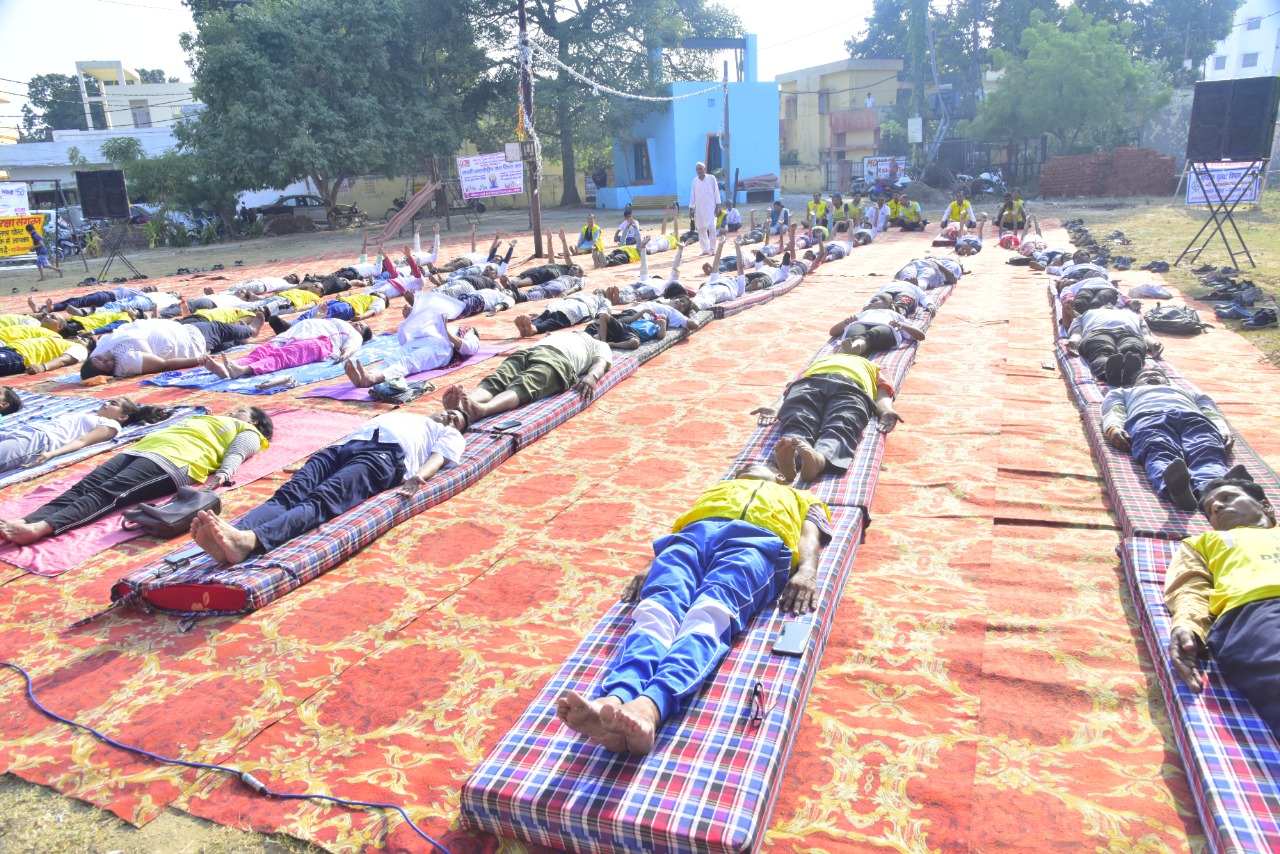 बरेली- आठवें अंतरराष्ट्रीय योग दिवस के अवसर पर नागरिक सुरक्षा कोर के प्रखंड अलखनाथ के द्वारा आज योग कार्यक्रम जनकपुरी पार्क आयोजित किया गया। योगाभ्यास डॉ सुरेश रस्तोगी जी ने ओम के उच्चारण से शुरू किया व मानव जीवन पर योग के महत्व को समझाया कहा कि योग का नियमित अभ्यास व्यक्ति को शारीरिक एवं मानसिक रूप से स्वस्थ रखता है सूर्य नमस्कार के साथ ताड़ासन कटिचक्रासन अनुलोम विलोम कपालभाति बजासन का अभ्यास कराया।